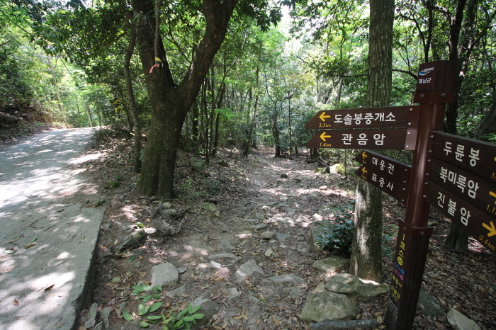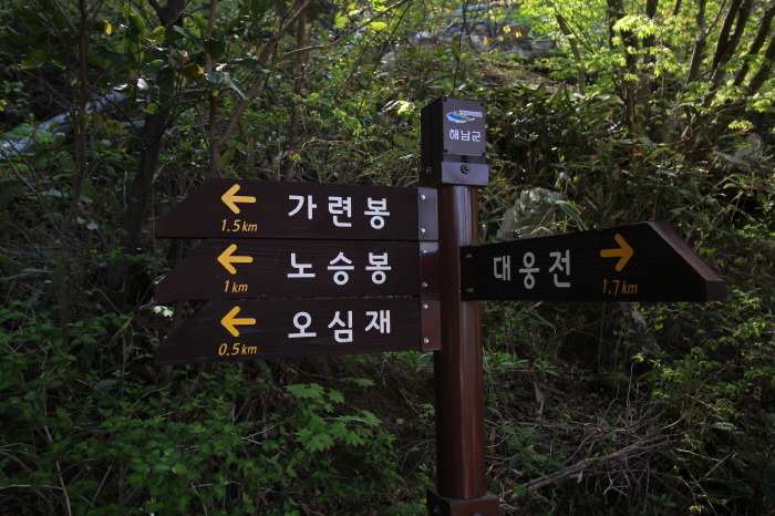 대흥사 매표소 - 주차장 - 대흥사 - 표충사 - 북미륵암 - 오심재 - 노승봉 - 가련봉 - 두륜봉 - 진불암 - 표충사 - 주차장 (5 시간 30분 가량) 1코스