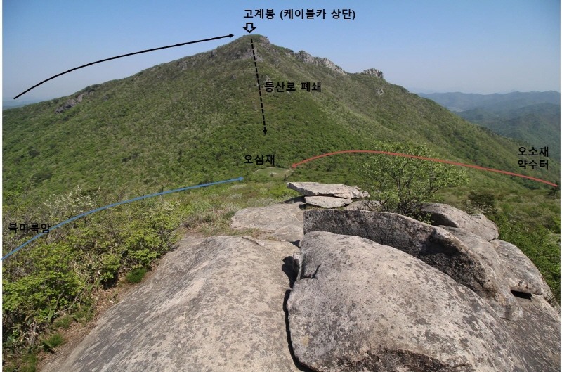 ▼ 고계봉에서 오심재로 내려가는 등산로가 있기는 있는가 본데......대흥사 주지가 막아놨네요.
