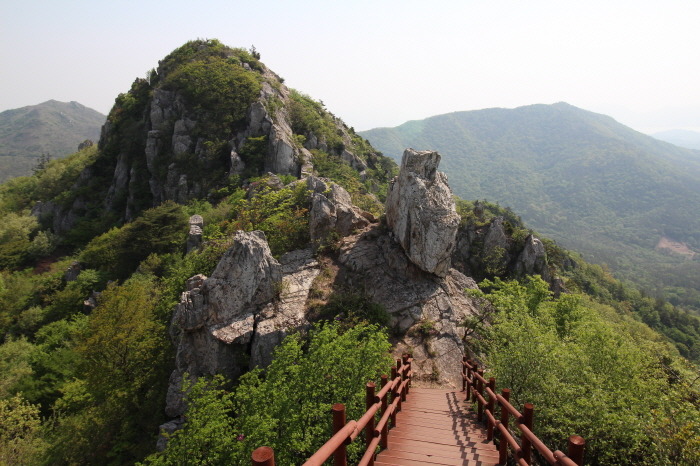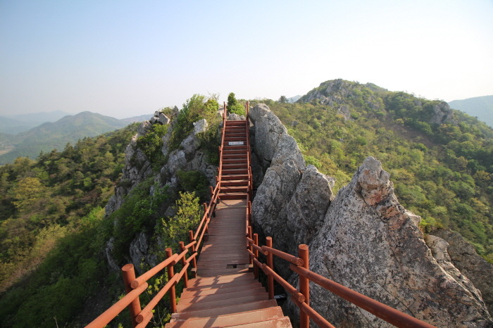 ▼ 암릉 중간에 위험할 것 같은 구간은 아예 나무계단을 다리처럼 만들어두었습니다.