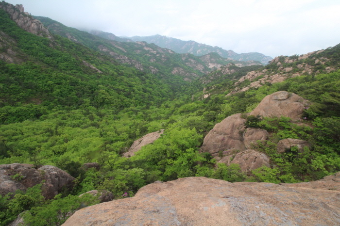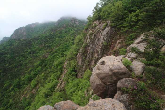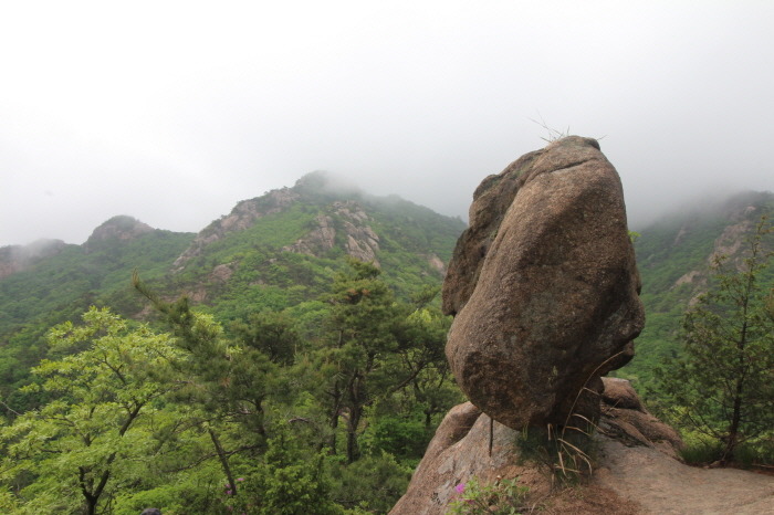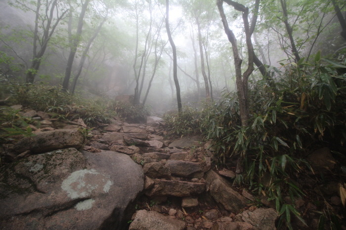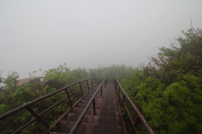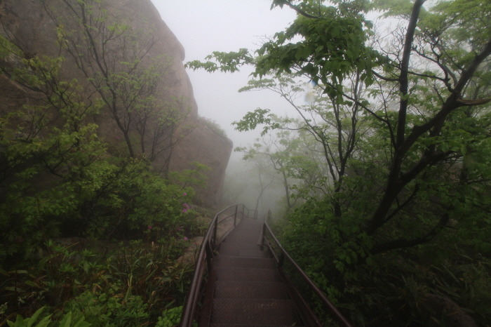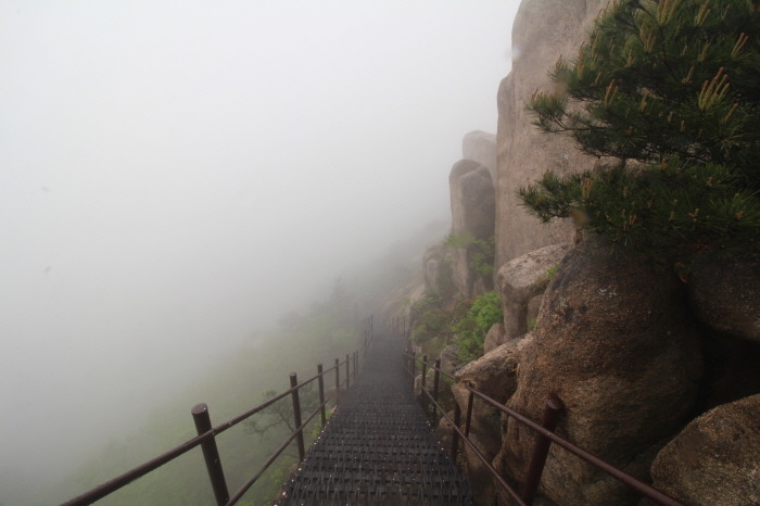 구름다리에서 볼 수 있었던, 옆의 장군봉 바위들의 멋진 모습을 못본게 아쉽지만, 구름 낀 모습도 나름 운치있고 묘한 분위기를 자아냅니다.