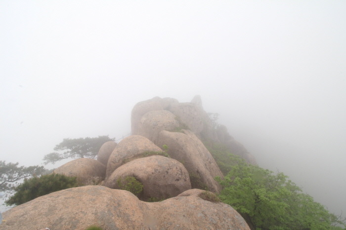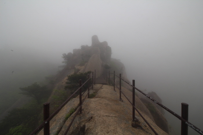 비가 온거는 아닌데....약간의 후두둑 정도..... 주변 가시 거리가 거의 10~15m 수준이라서, 애초 계획했던 향로봉과 구정봉은 포기하고