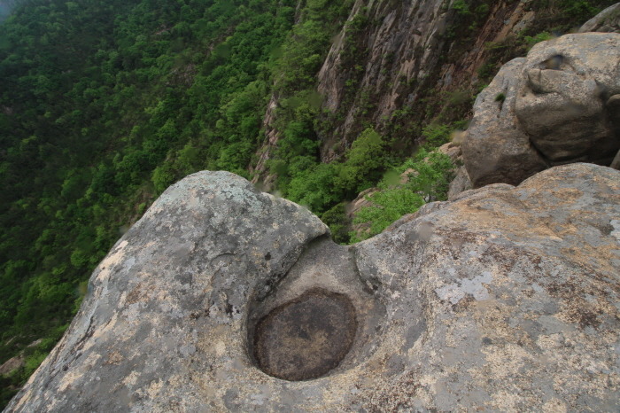 지나가시던 분의 설명을 들었는데 중간 부분 제일 오목한 곳에 엄지 모양의 뱀머리 바위. 이거라고 들은 듯 한데...