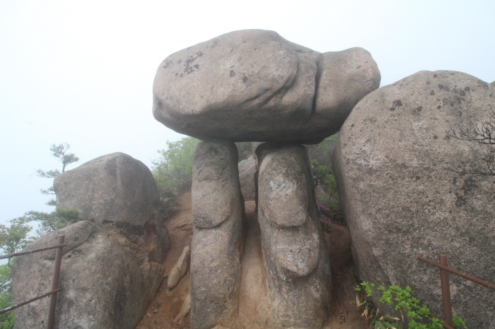 ▼ 통천문 통과 후 맞은편 계단 중간에서 뒤돌아본 바위. 통천문 통과 후 뱀 머리 모양의 바위를 보고가야 복이 온다고 하네요.