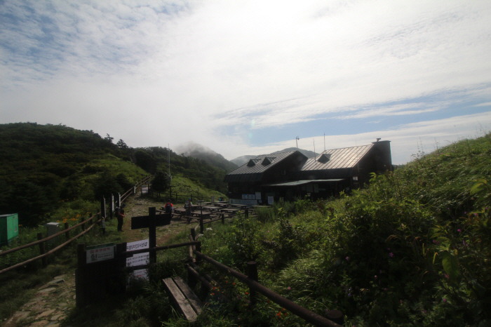 ▼ 벽소령 대피소, 규모가 조그마한 줄 알았는데 뒤돌아보니 산 아래를 타고 건물이 주르륵 이어져 있었습니다. 꽤 큰 대피소네요.