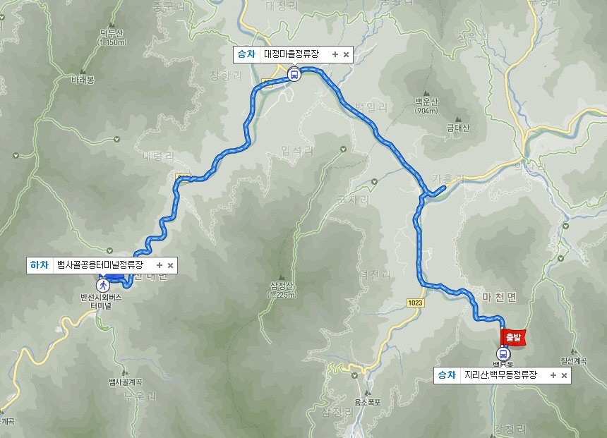 <백무동에서 뱀사골로 가는 대중교통 편>