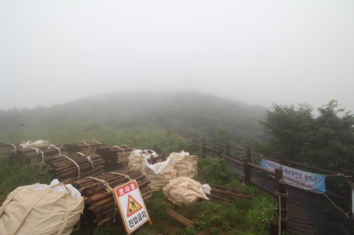 ▼ 8월 말까지, 화개재 가는 길의 드문드문 등산로 정비 공사가 한창 이었습니다. 지금쯤 완료되었겠네요.