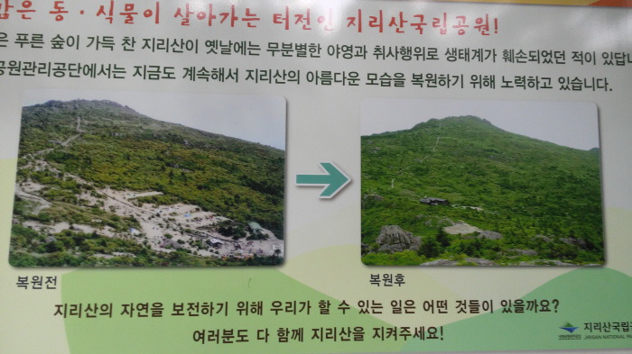 ▼ 과거 세석 대피소 주변 풍경의 자연 복원 전/후 비교 사진 입니다. 세석평전.