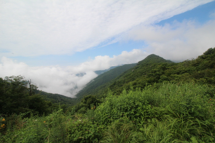 ▼ 구름이 살짝 걷히면서 조금씩 드러나는 산세
