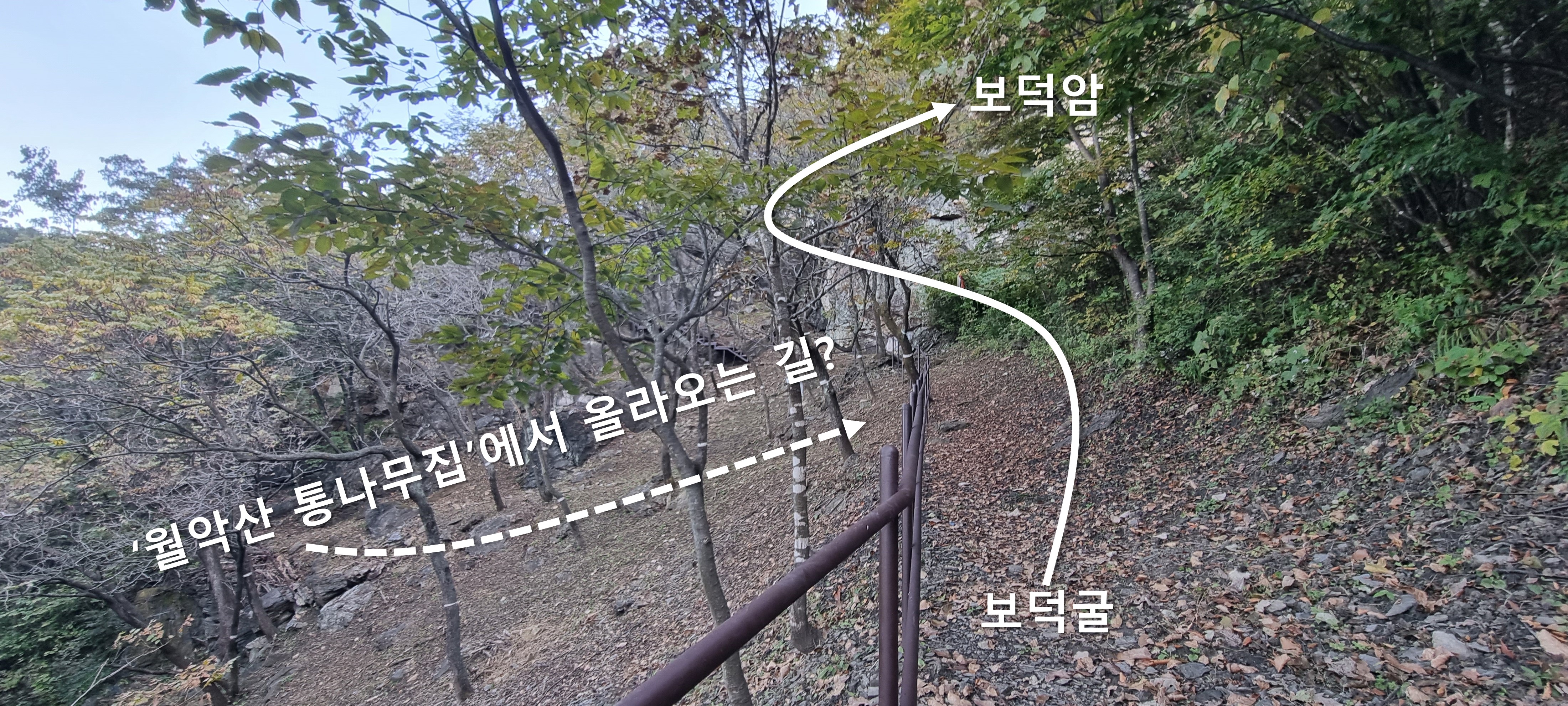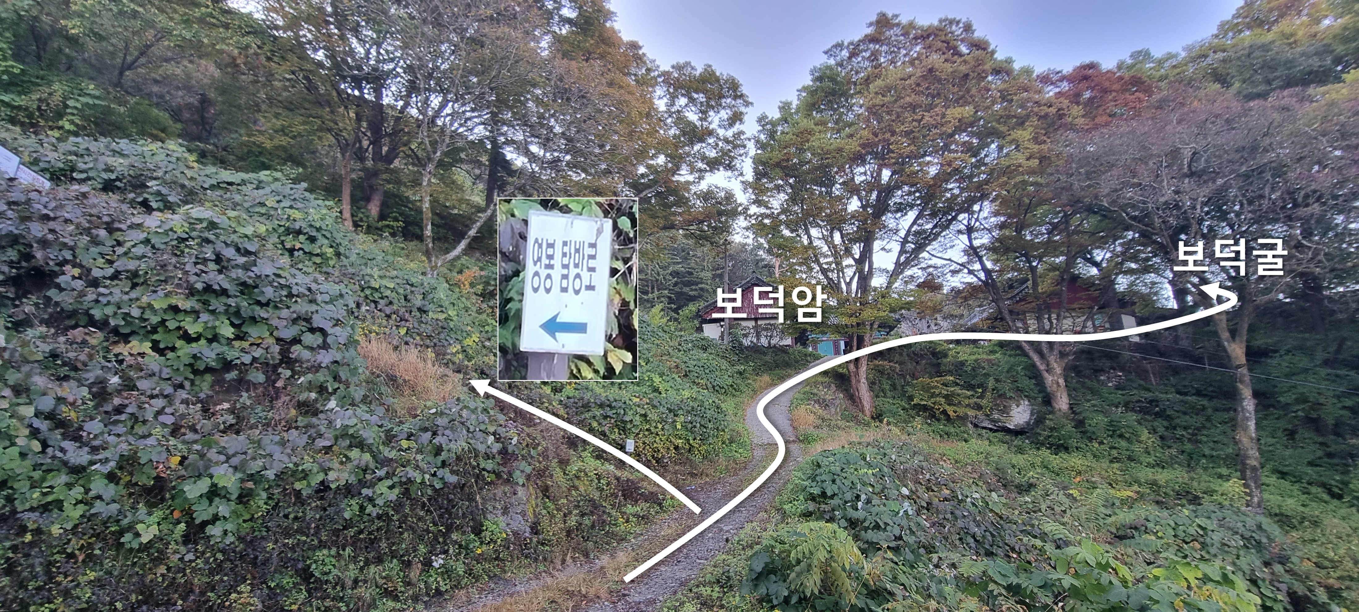 통나무집 건물 뒷켠으로 시작해서, '보덕암'과 '보덕굴' 가운데로 올라갈 수 있다고 합니다.