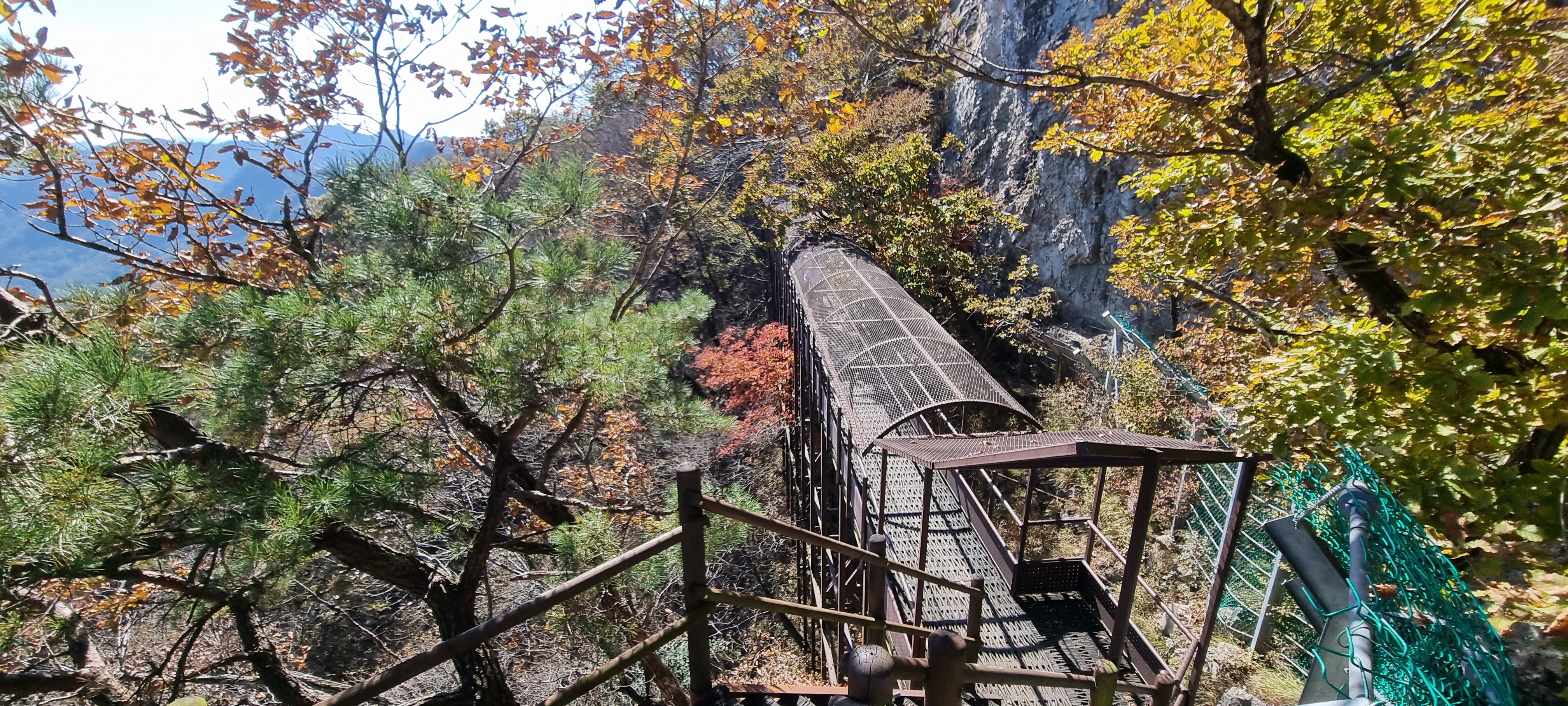 낙석 사고 방지용 쇠철망 데크를 지나면