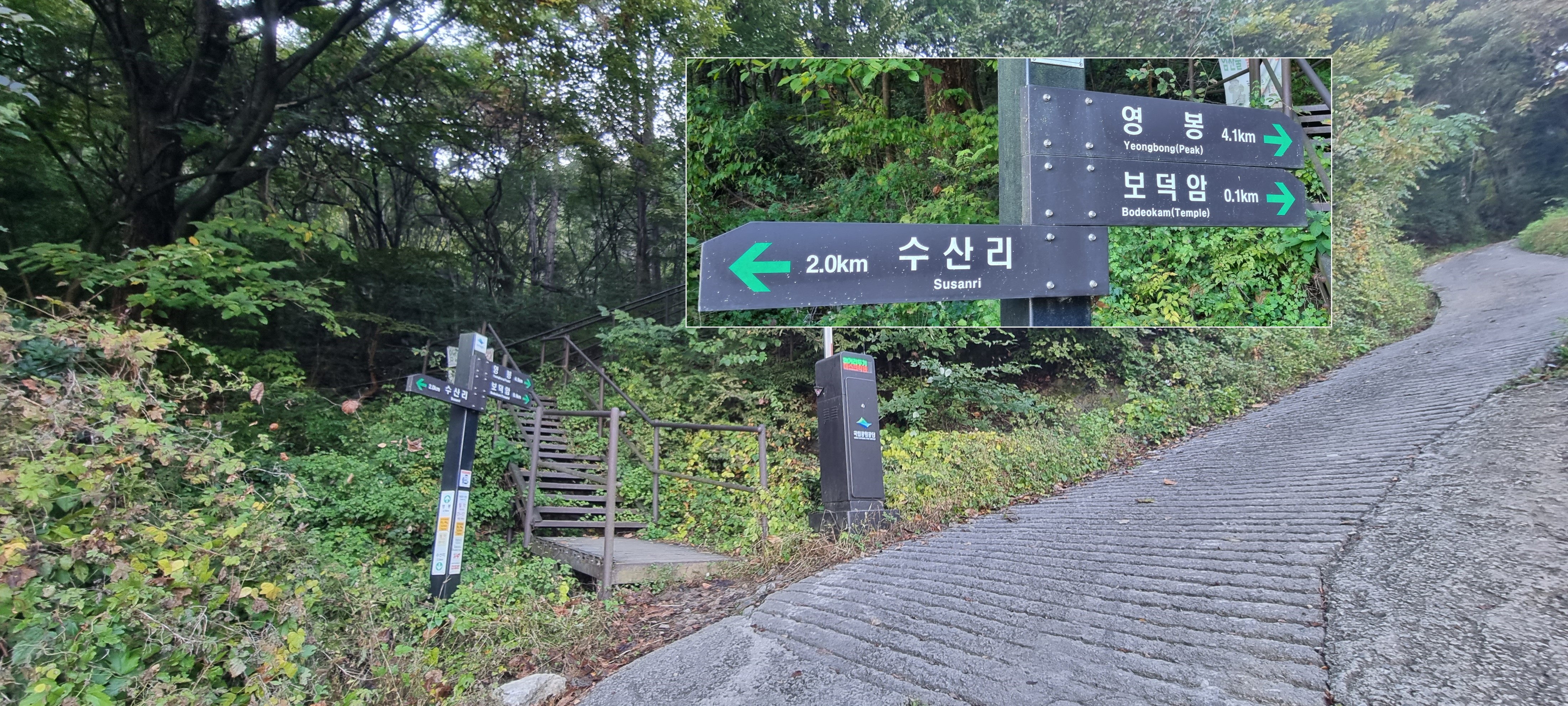 급경사 계단이 있다는 얘기는, 예전엔 위험했던 코스가 잘 정비되었다는 의미니까요.