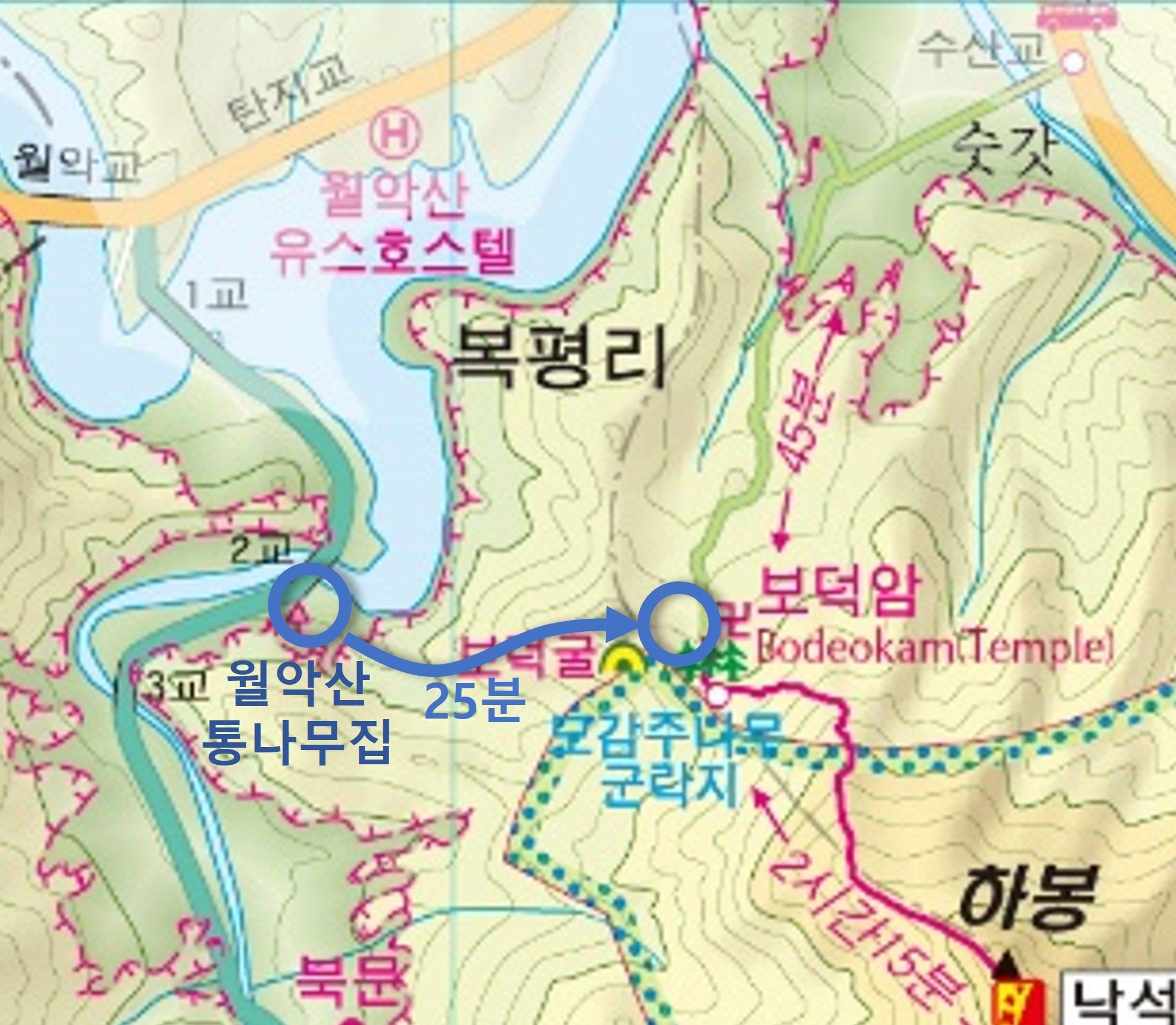 여기에서 보덕암까지 2.2~2.3km