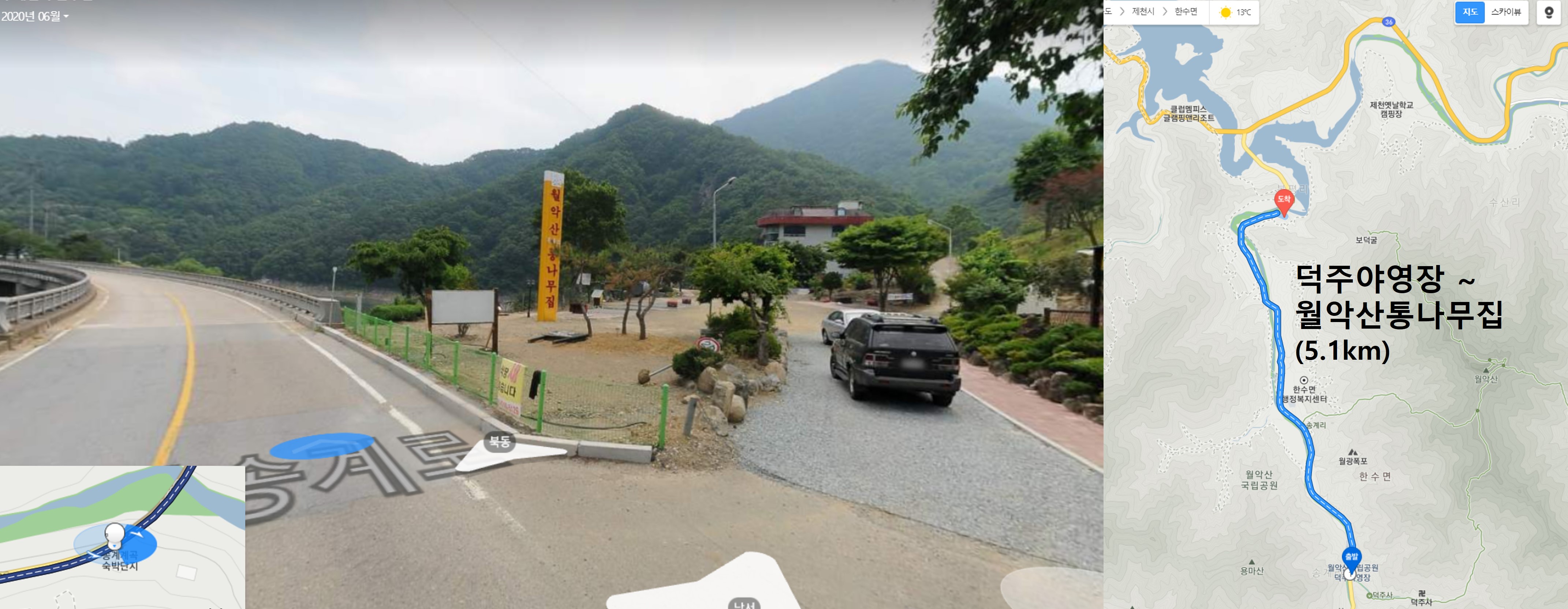 덕주사 입구 상가마을에 아침 07:35 정도에 도착해서, 무료 주차장에 주차합니다.