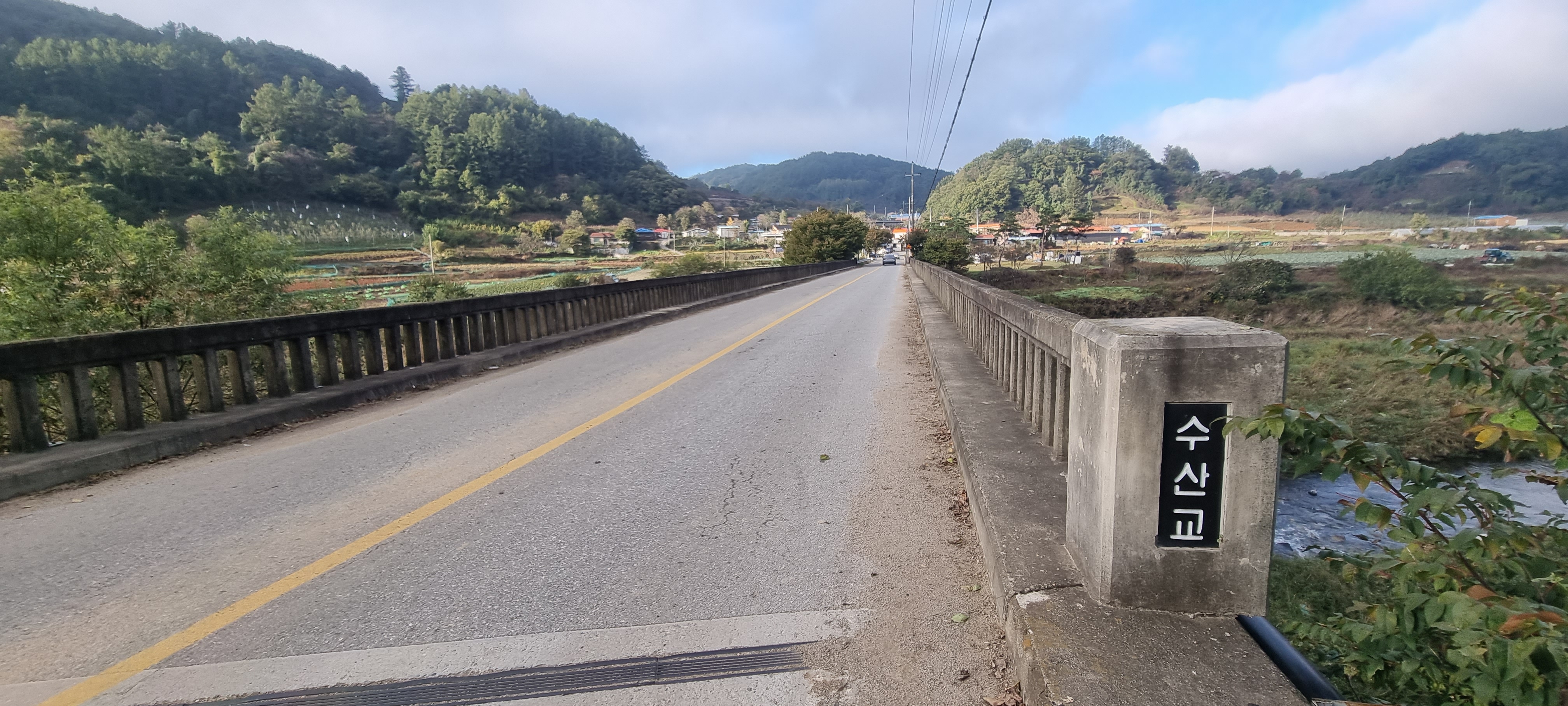 잠시 망설이다가, 그냥 애초에 계획했던 대로, 수산1리 마을 '수산교' 앞까지 버스를 타고 갔습니다. 13분.