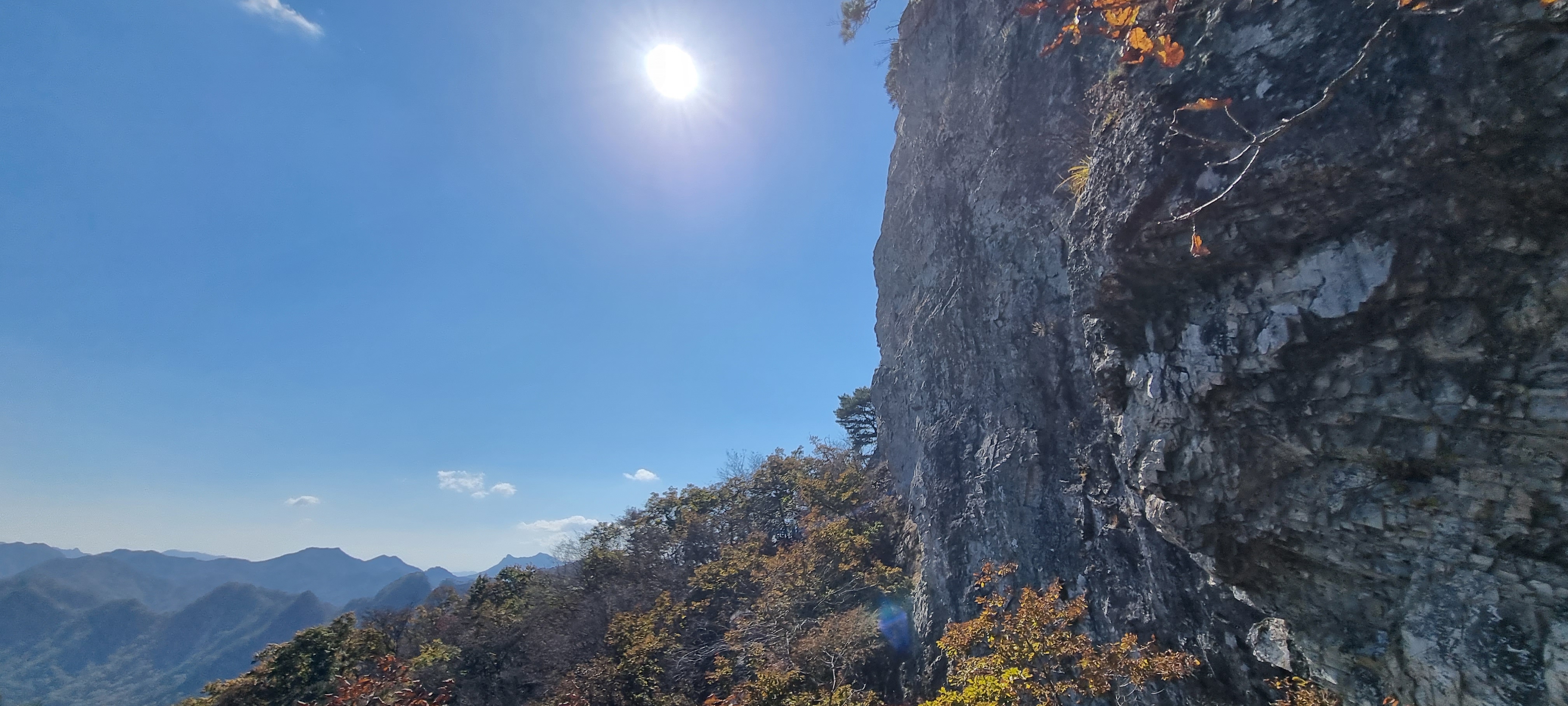이쪽 방향에서 뒤돌아보니, 영봉의 직벽이 보입니다.