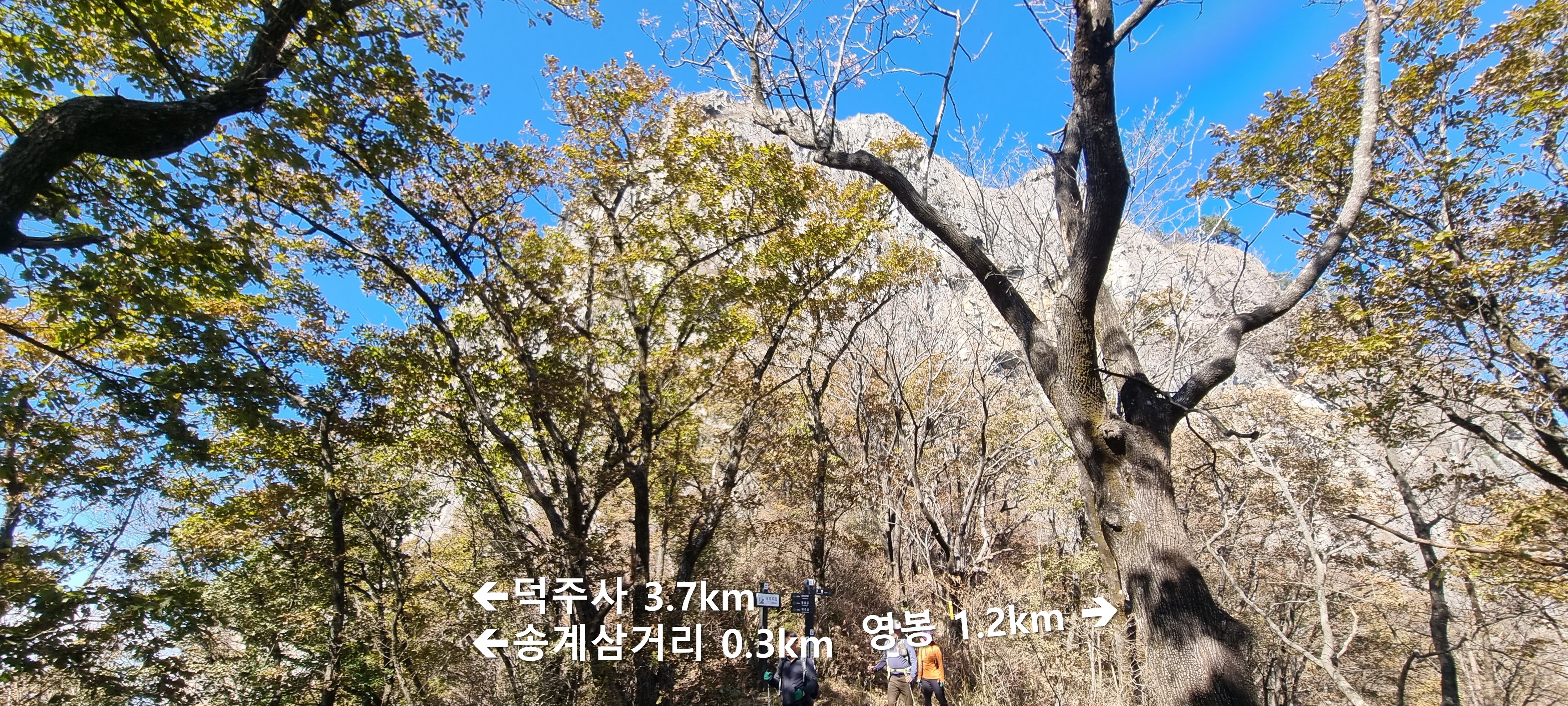 덕주사 방향으로 하산 시작 (4.6km~4.9km, 3시간 가량 소요)