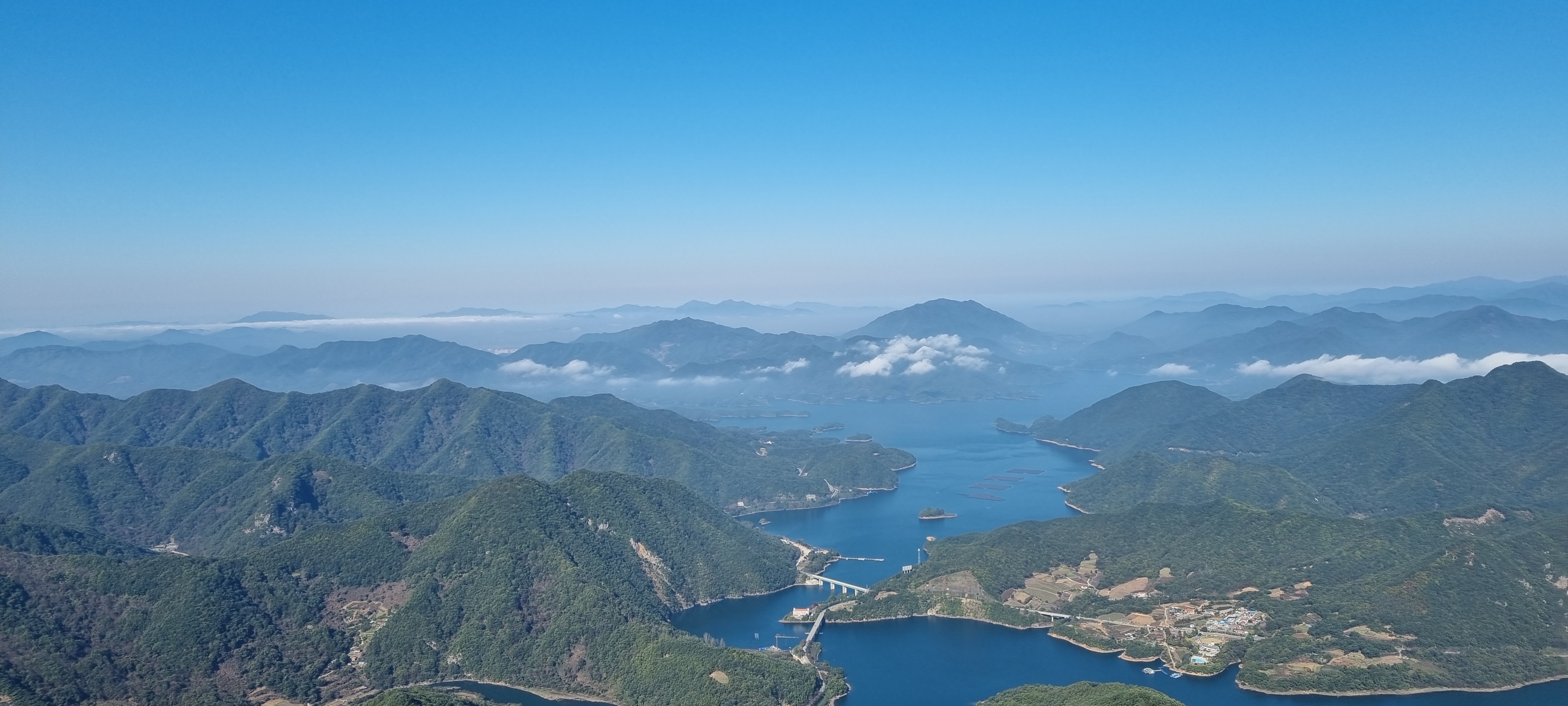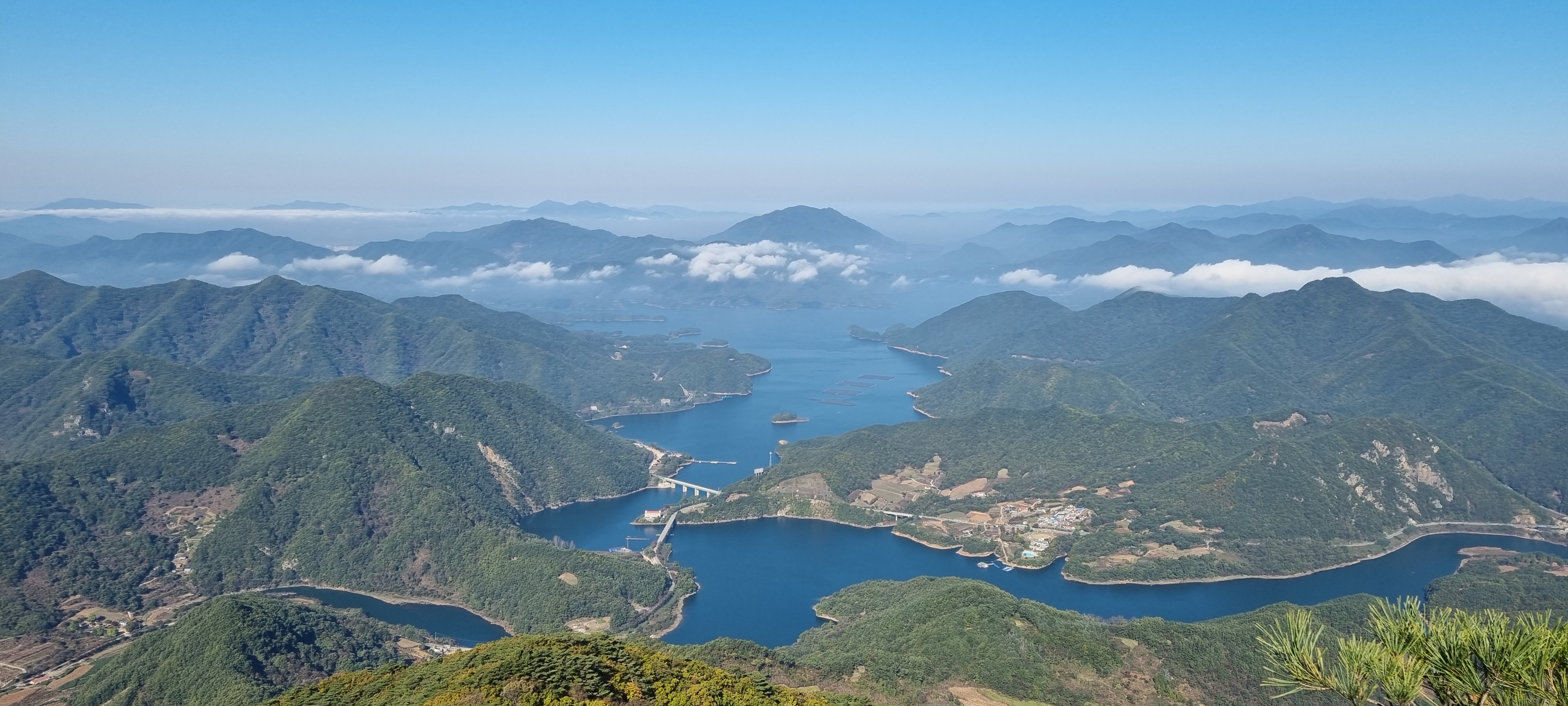 오전 10시가 안된 시점이다 보니, 충주호에 물안개 겸 구름이 쫙 깔렸습니다.