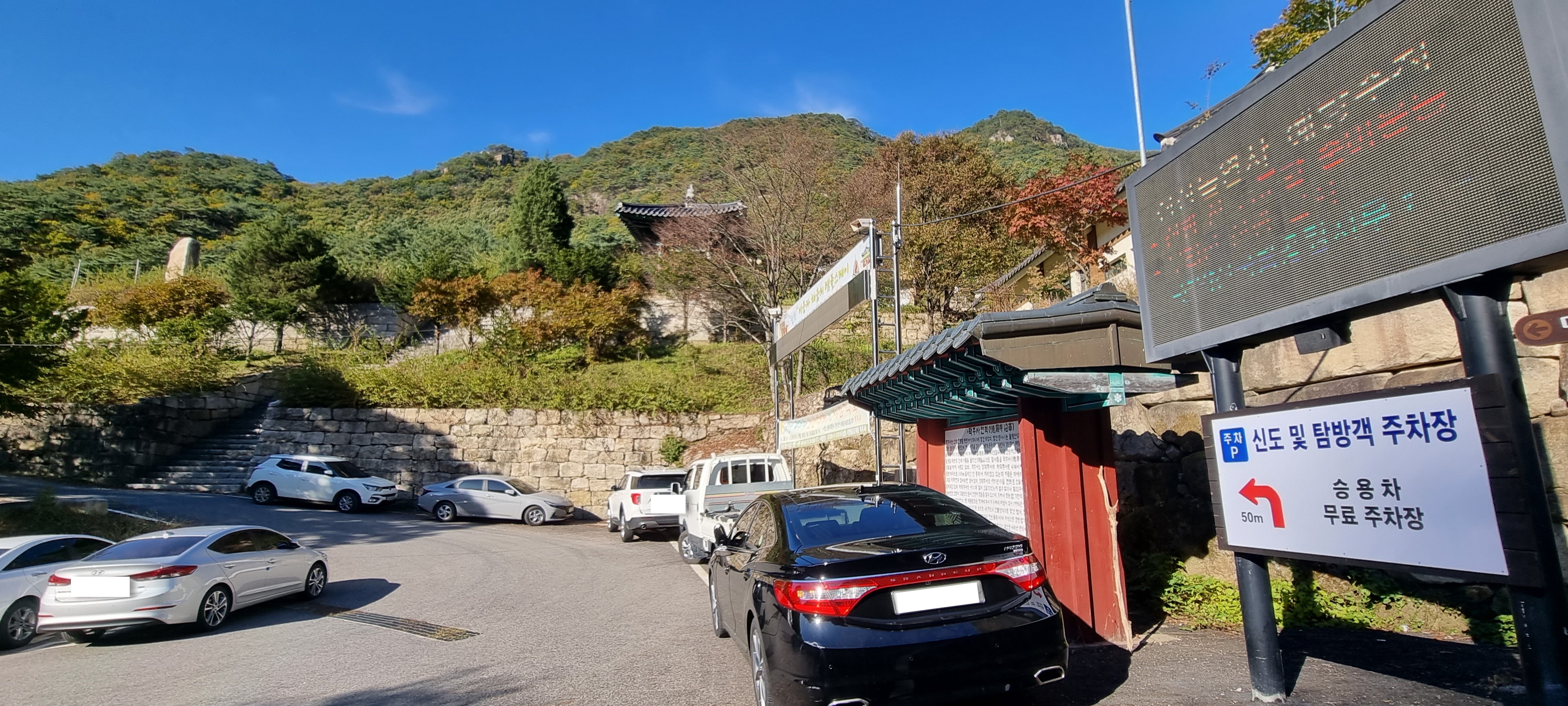 보덕암 주차장과 그 주변은 이미 만차! 토요일 아침 9시가 아직 안된 시각입니다.