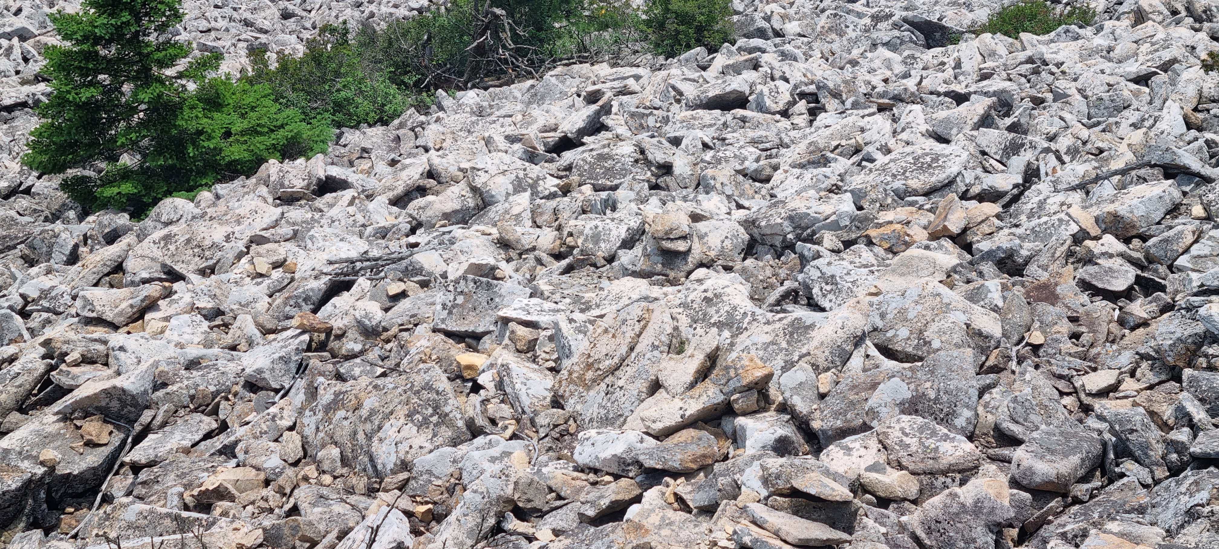 너덜바위 지대를 밟고 가는게 아니라, 이 쪽 능선의 아래로(남쪽방향으로) 너덜 바위가 내려와 있습니다