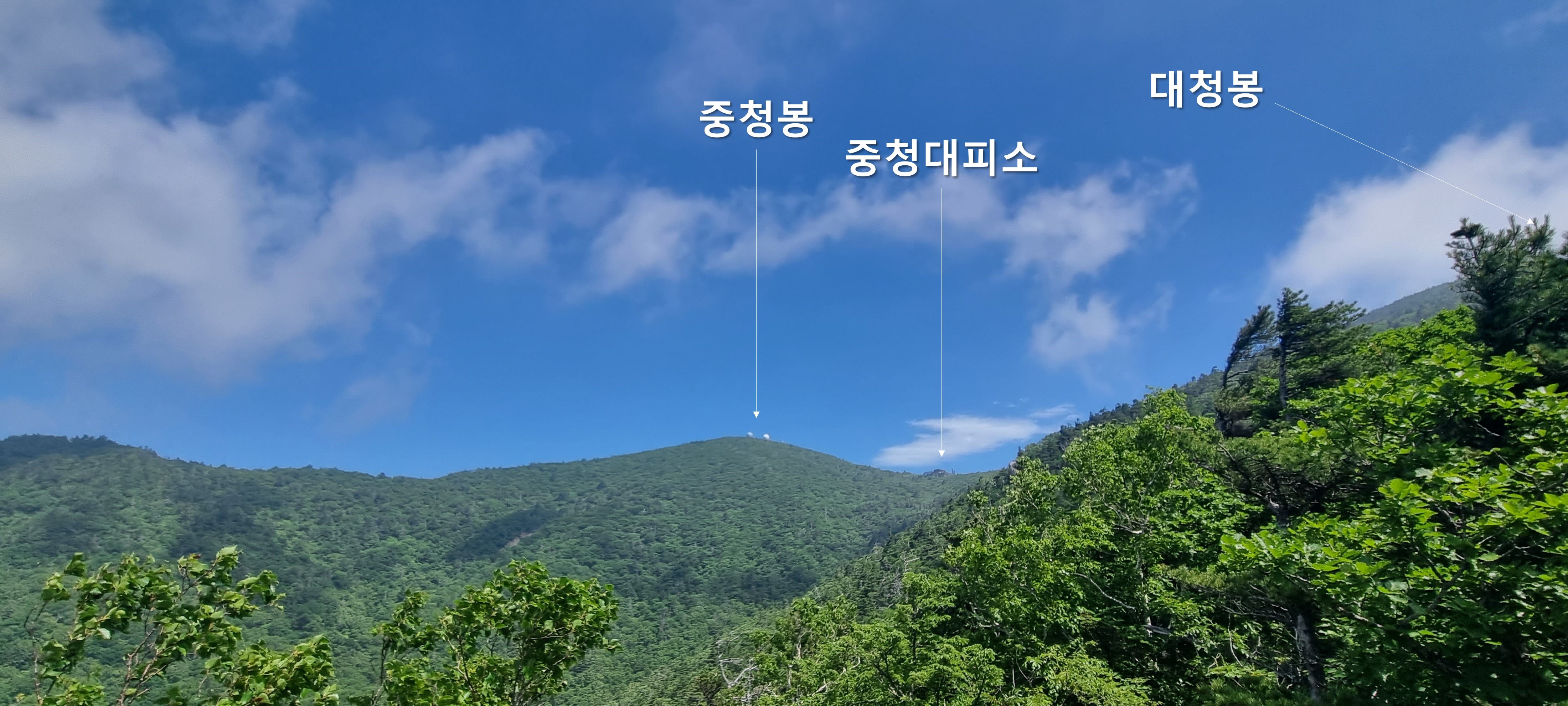 등산 코스에서 약간 뒤돌아서 중청봉(군부대) 방향으로 5m만 살짝 올라가면