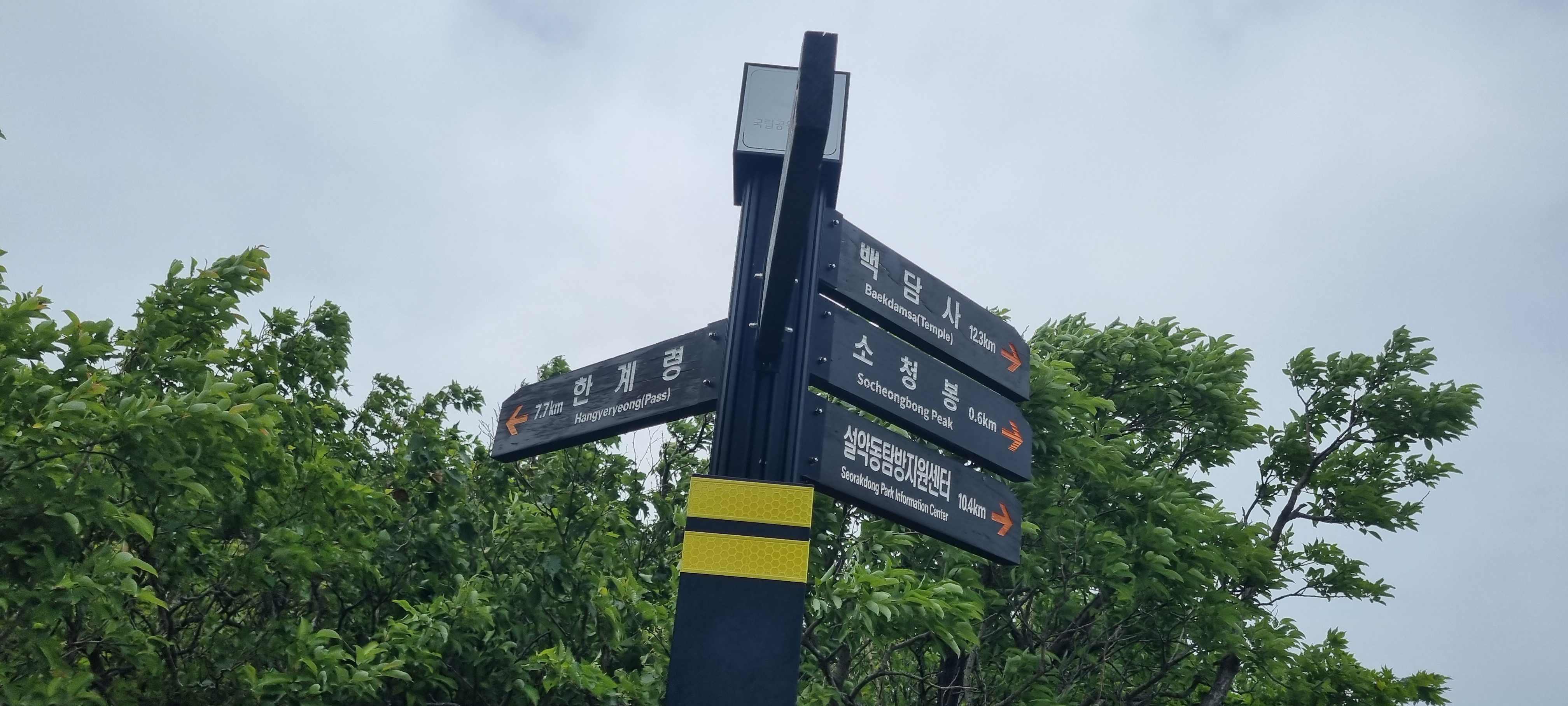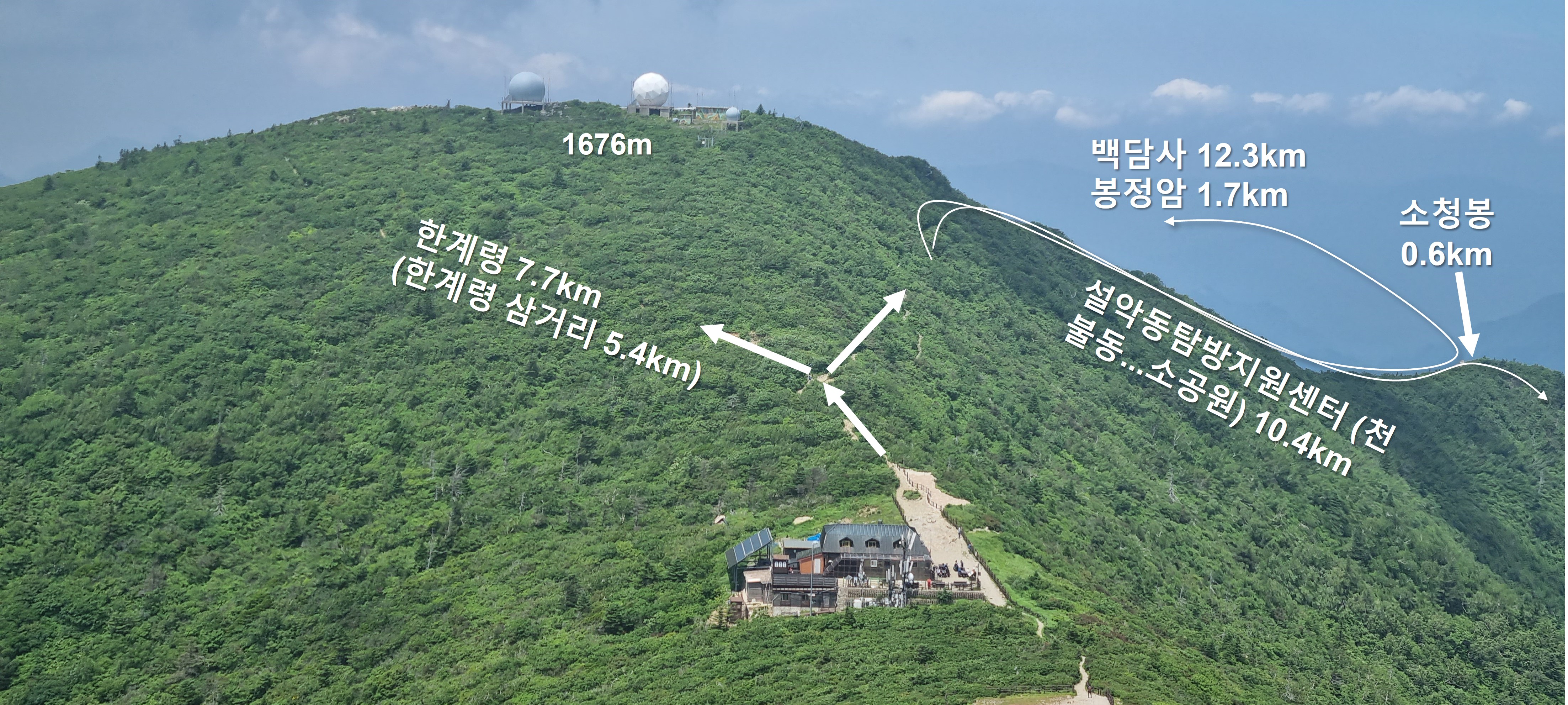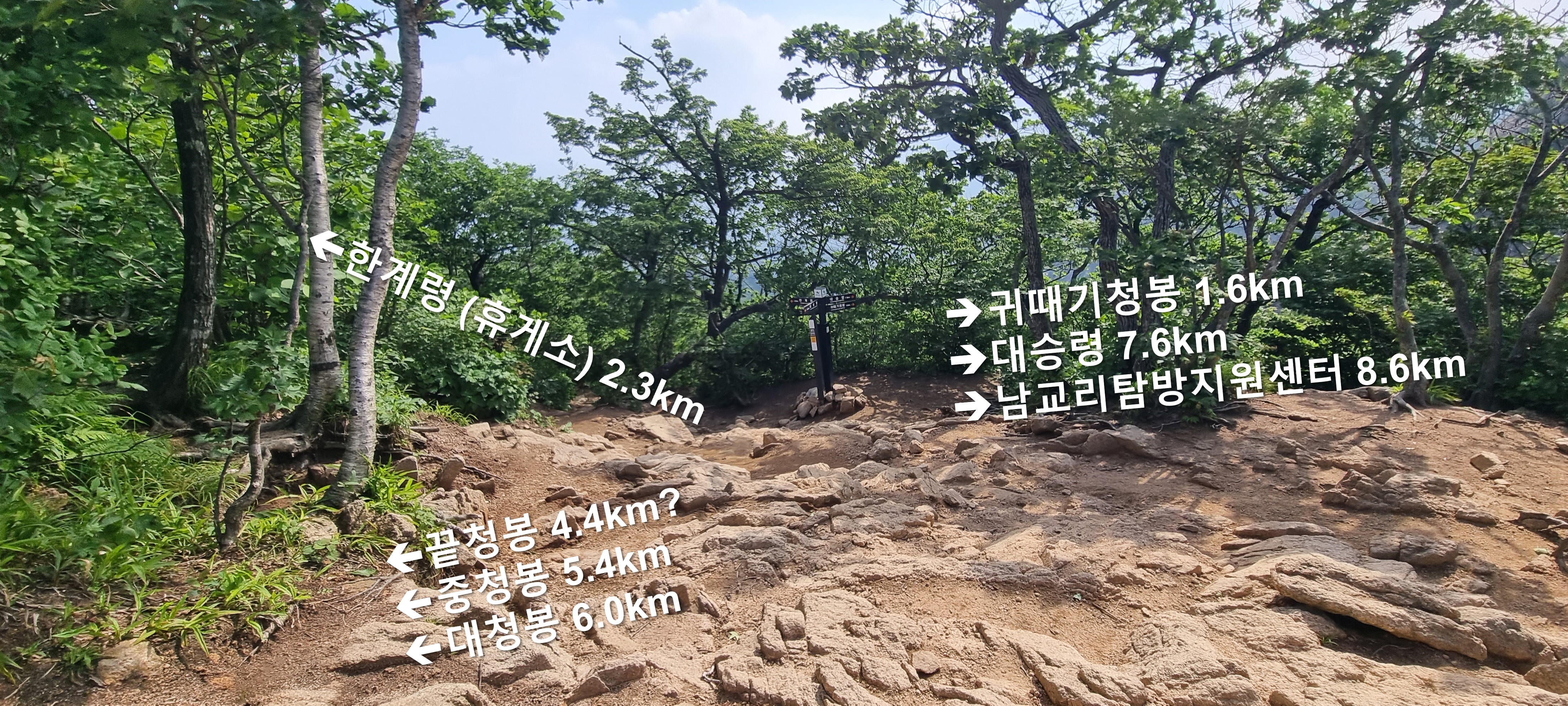 ex) 중청 삼거리 갈림길에 있는 이정표에는 '한계령 7.7km'로 표기되어 있습니다.