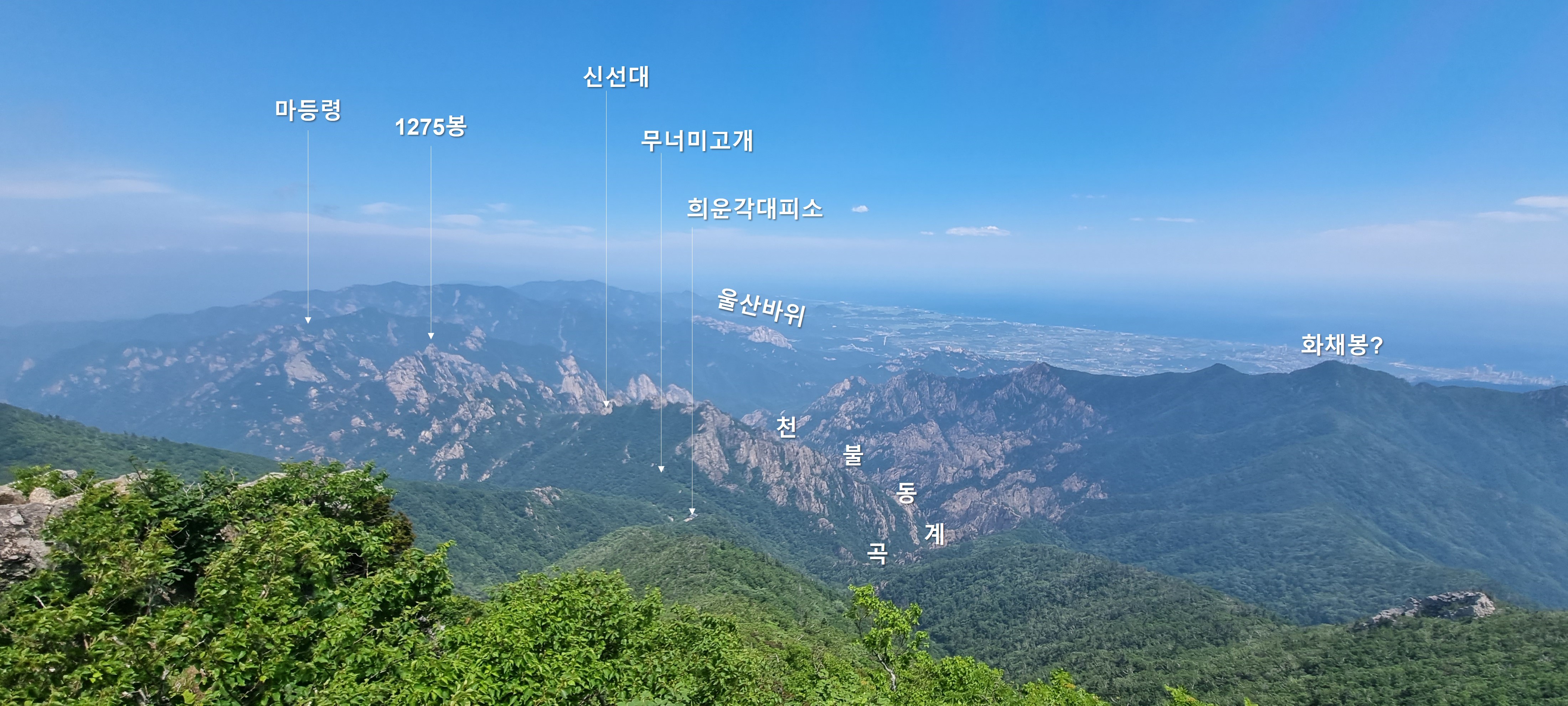 대청봉에서 본 천불동과 공룡능선, 속초 방면