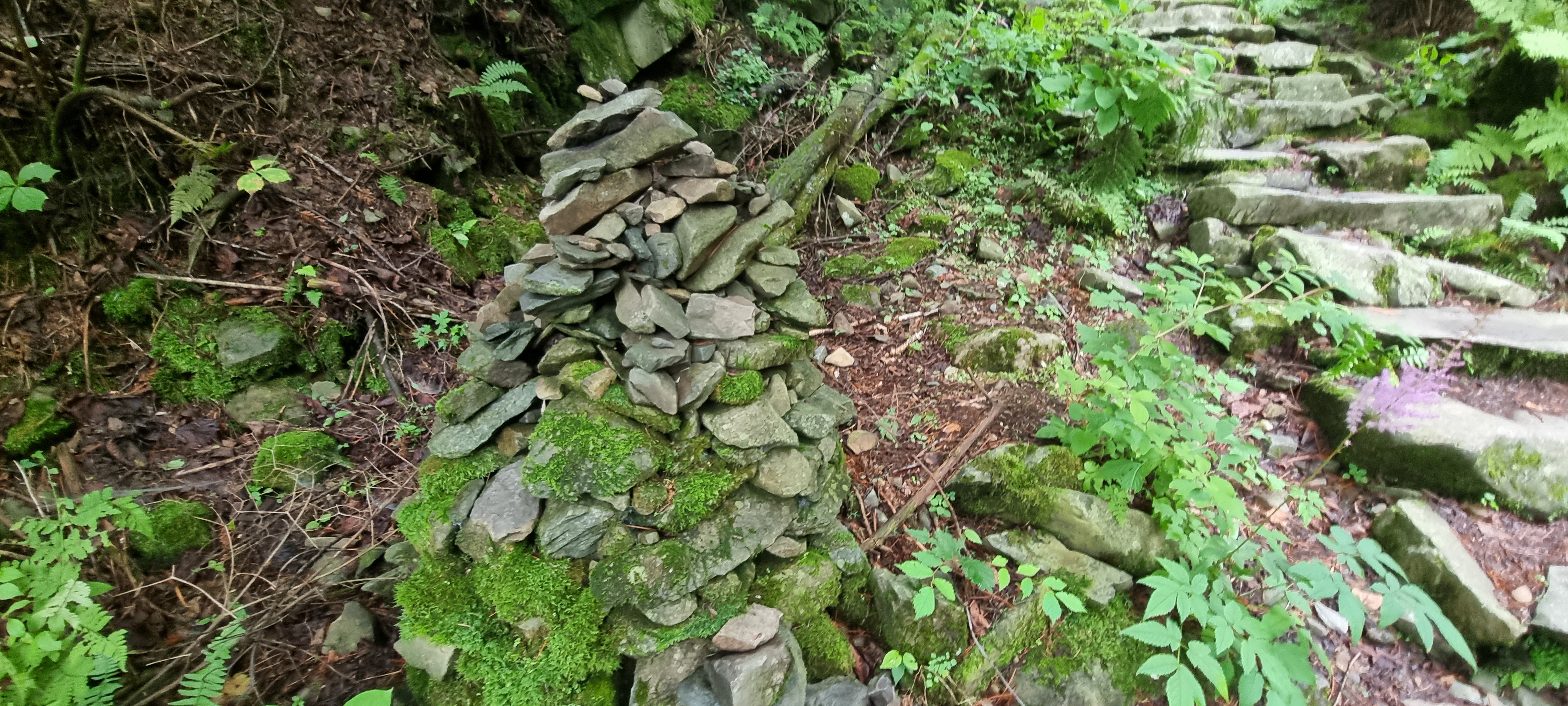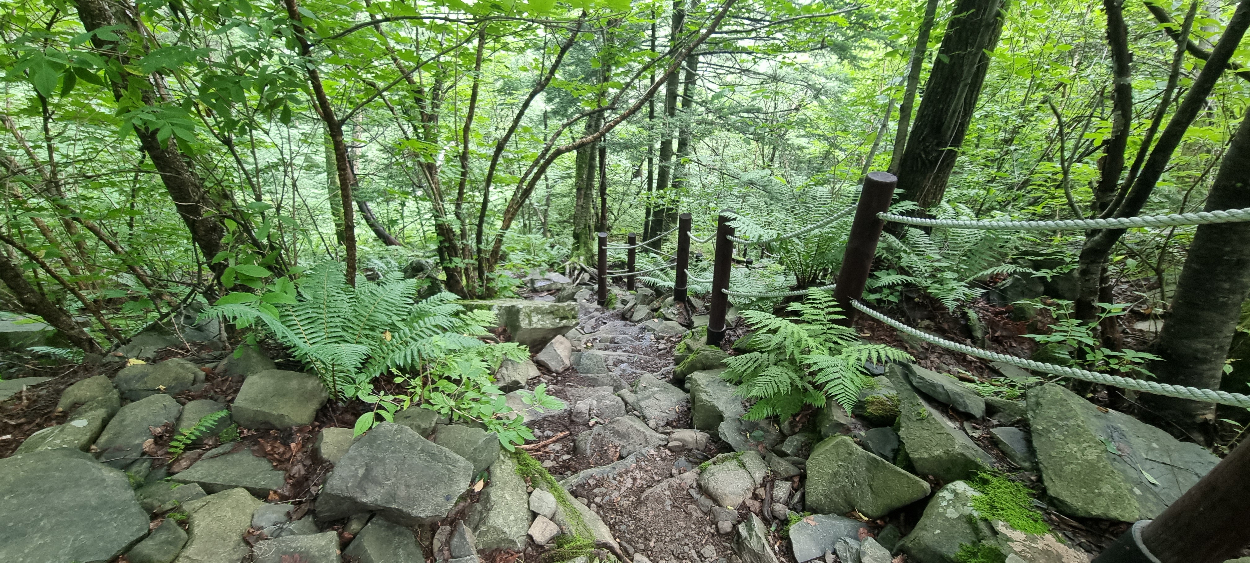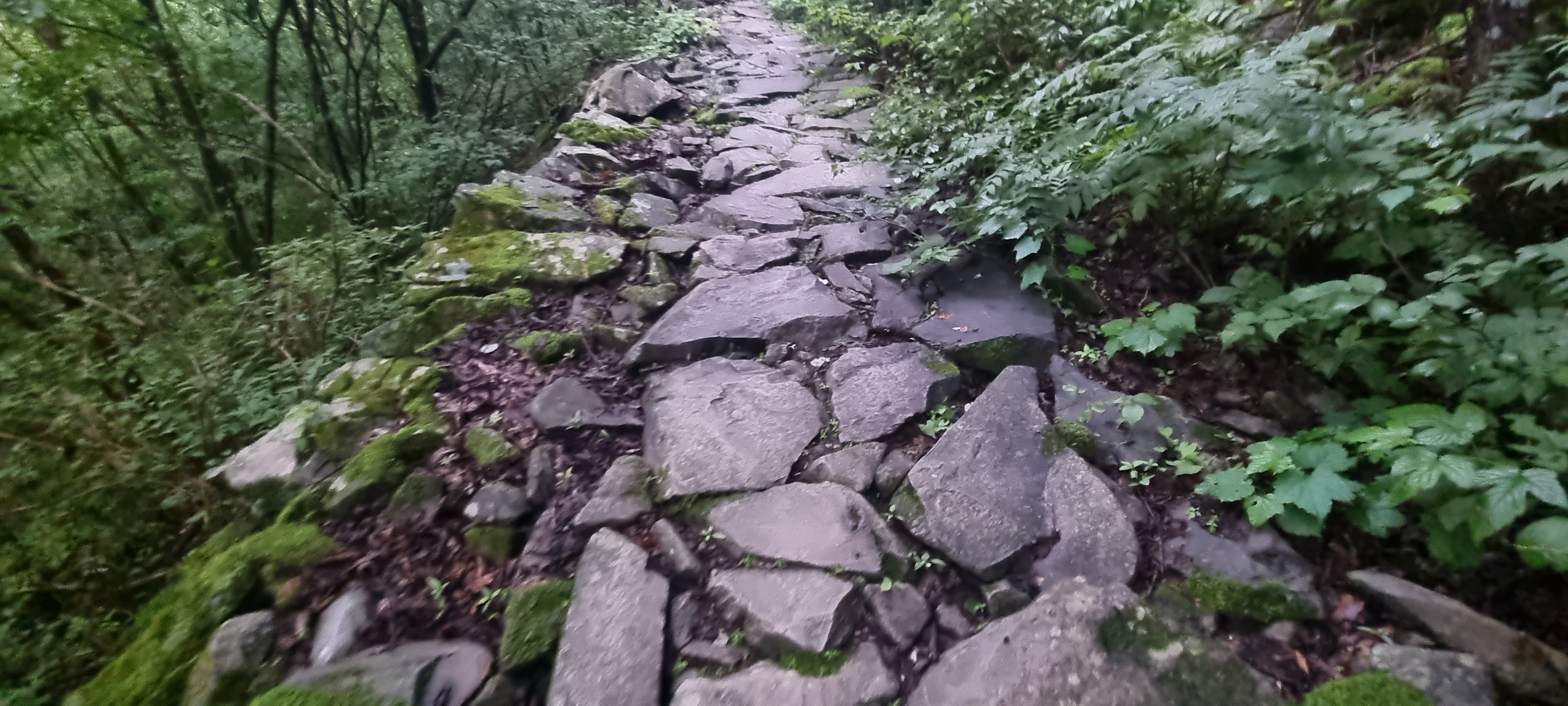 올라가기 전에, 폐쇄된 구 등산로의 입구에서 이제는 사람이 밟고 다니지 않는 돌계단을 구경하고 올라갔습니다.