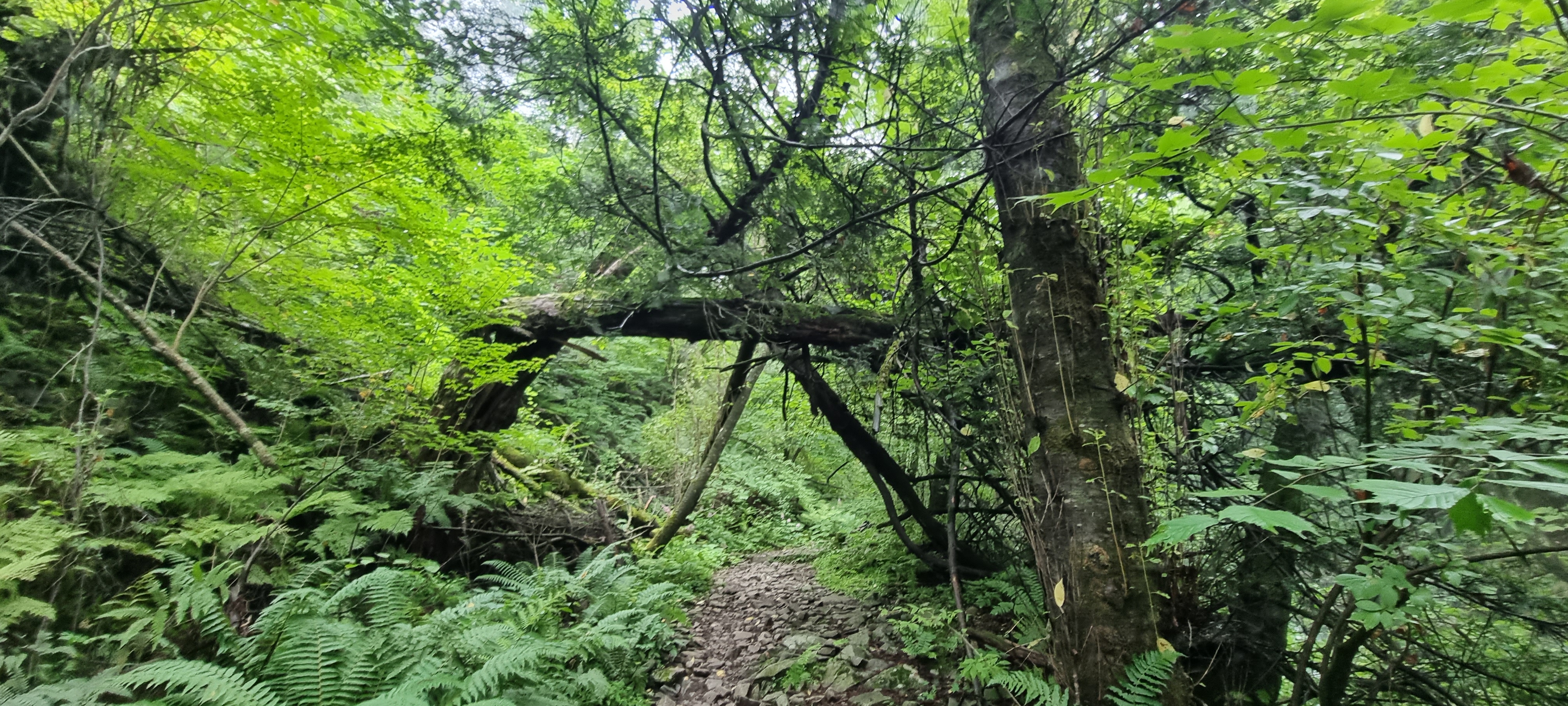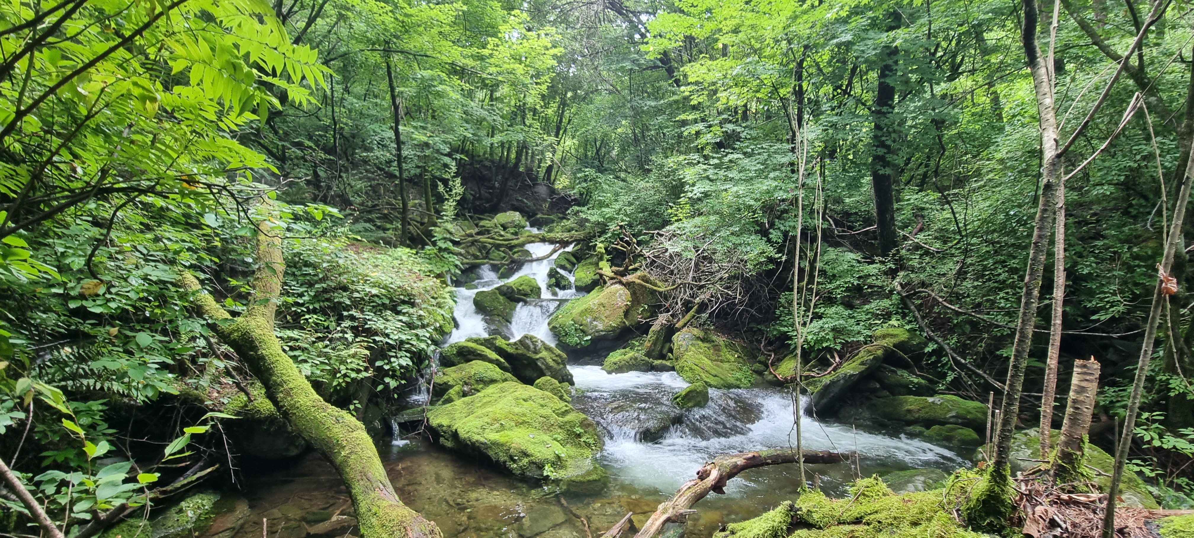 길 왼쪽 옆으로 계곡물이 보입니다만, 무리해서 내려갈 필요는 없습니다.