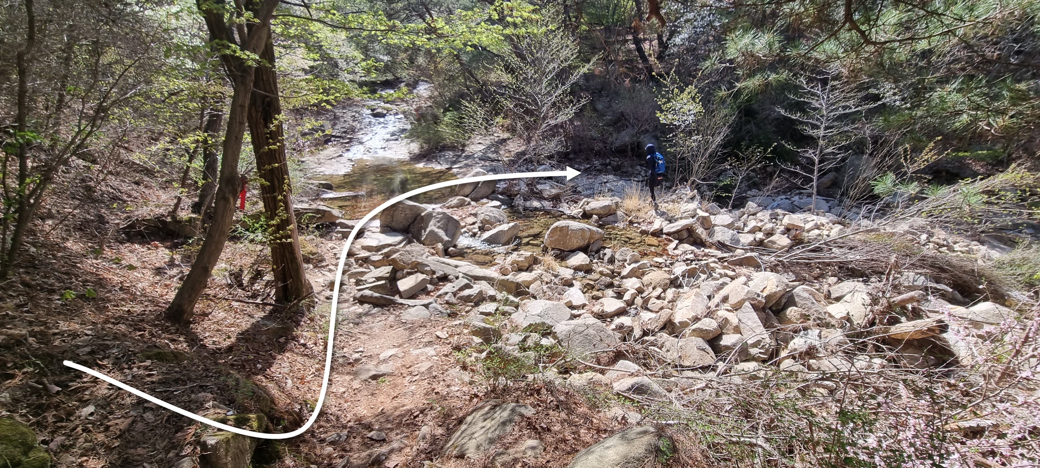 이 곳에서 오른쪽으로 갈라져야, 용마북능선을 타고 올라갈 수 있습니다.