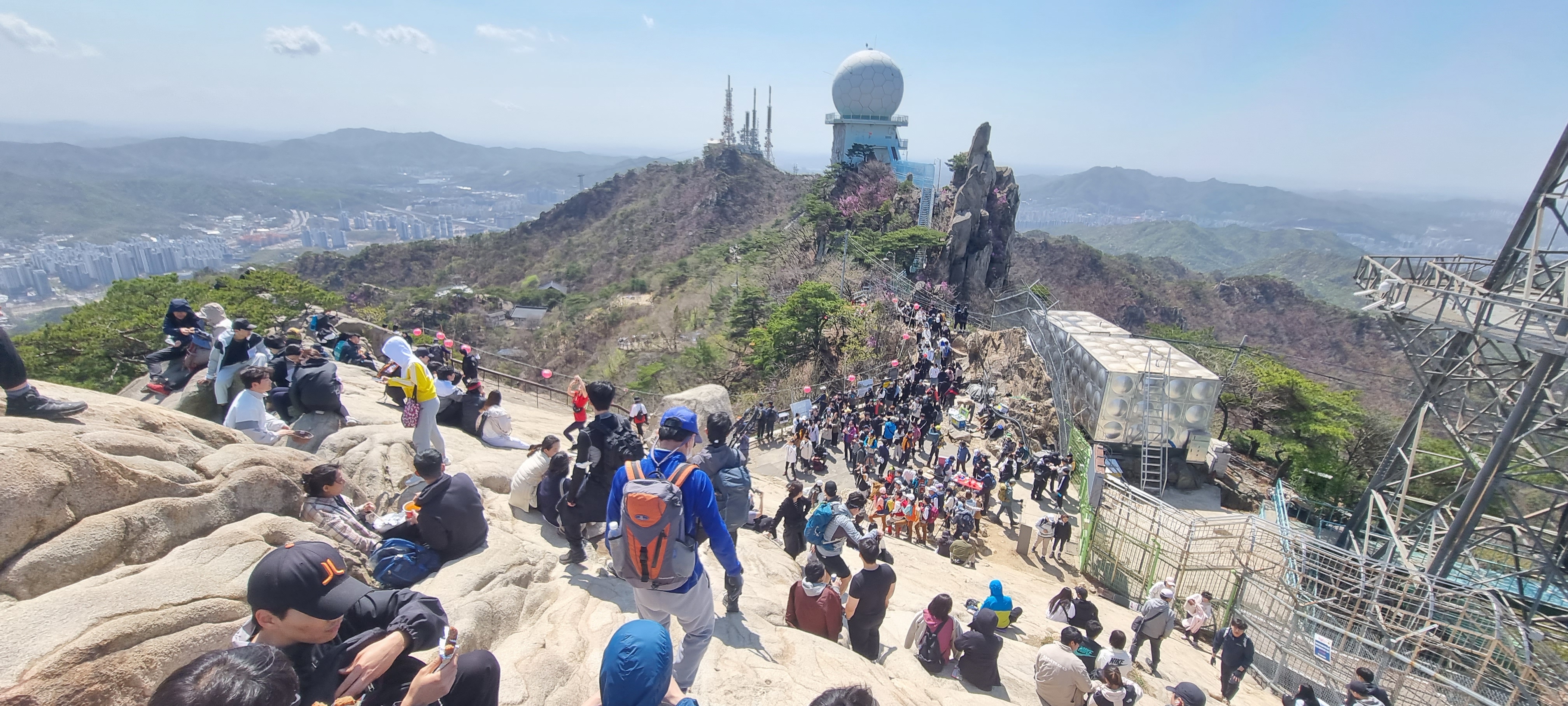 관악산 정상 표지석에서 인증사진 찍는 줄이 어마무시 하네요. 😅😨