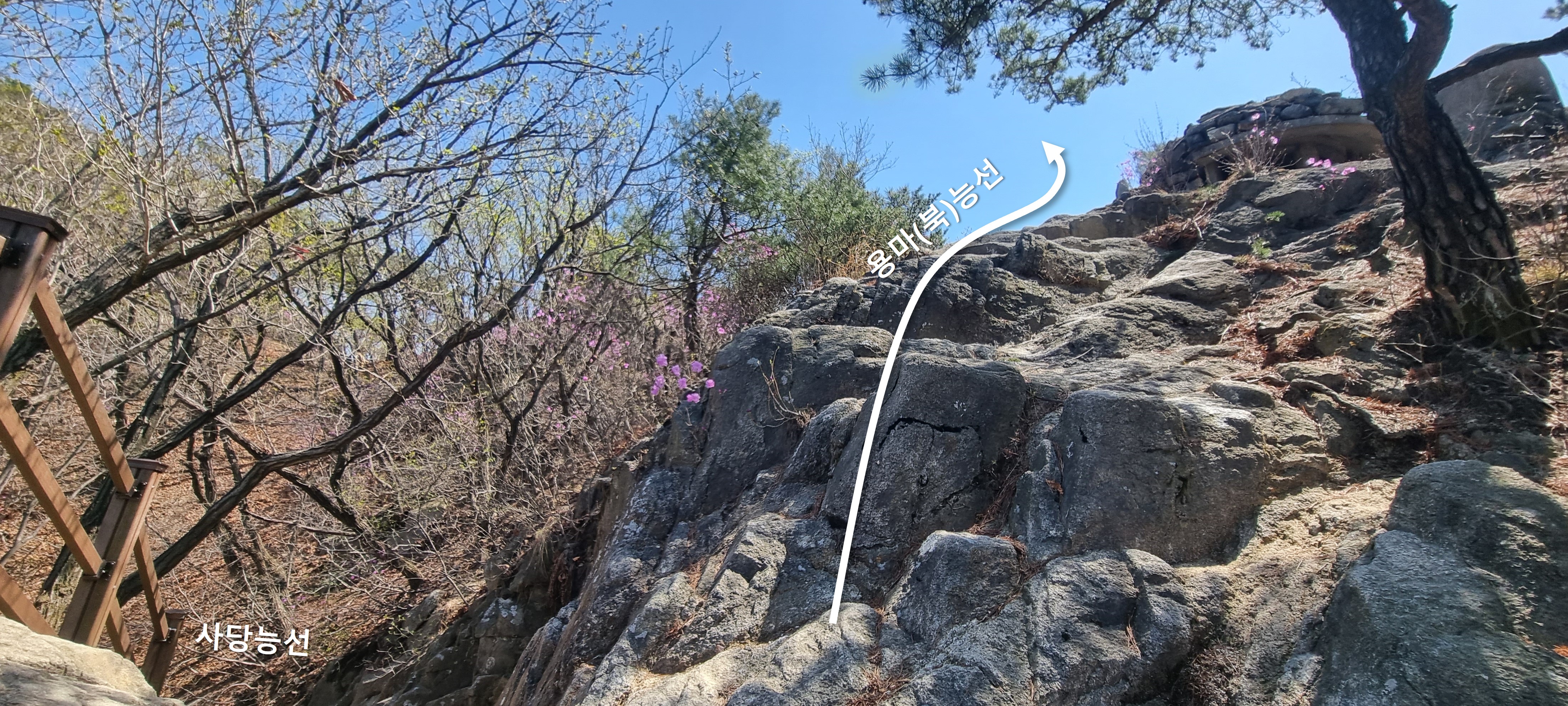 벙커 있는 곳으로 방향을 꺽어, 용마(북)능선 으로 바위를 타고 올라갑니다.