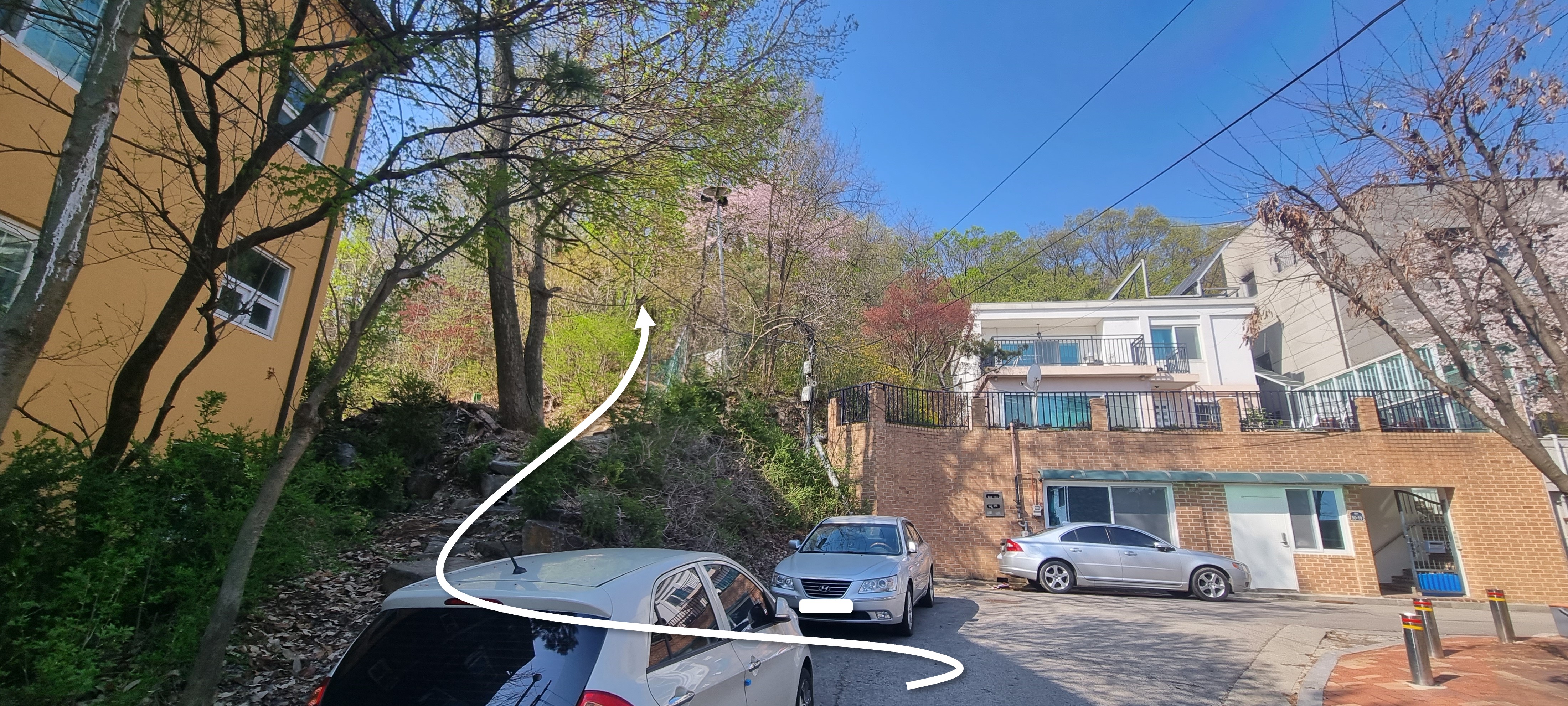 왼편 하천옆으로, 주택가 도로를 따라 올라가면