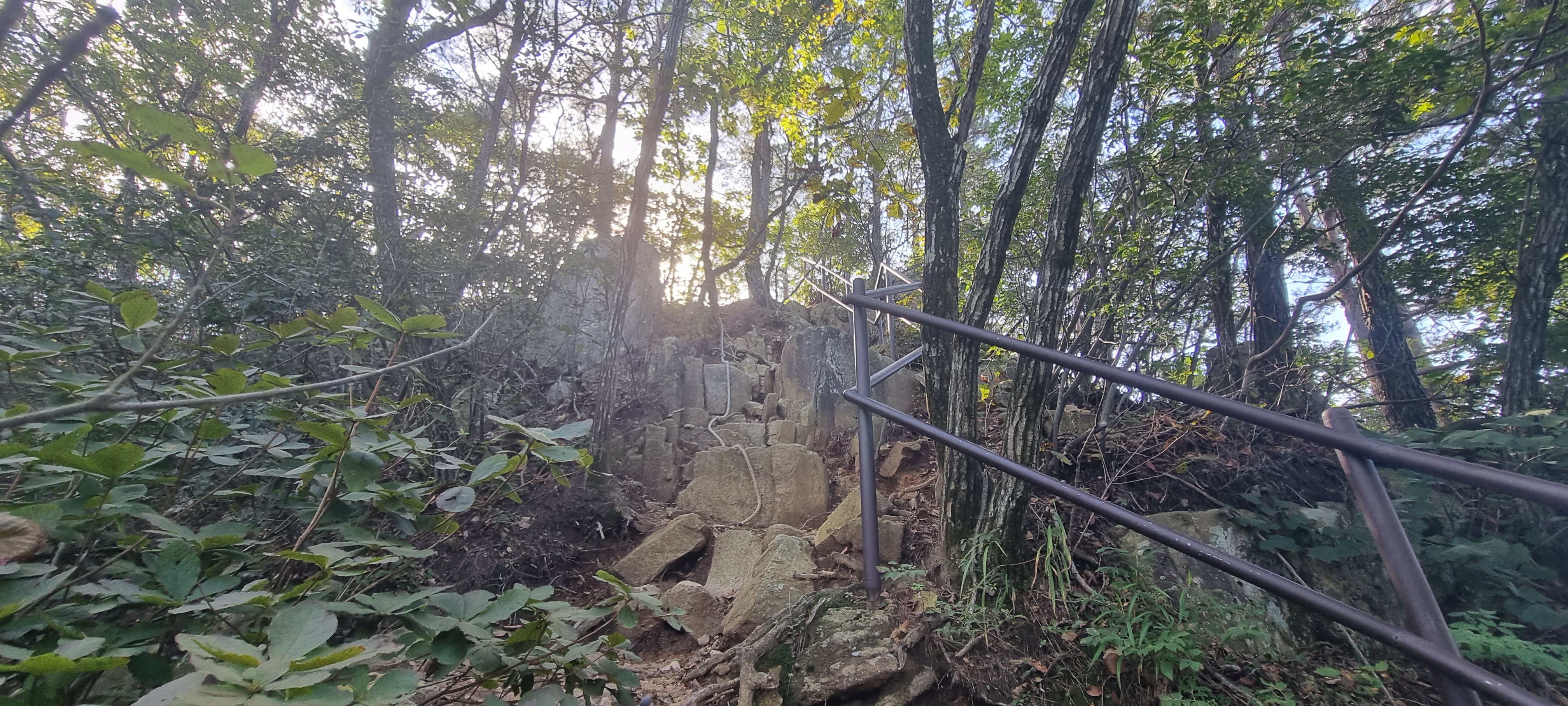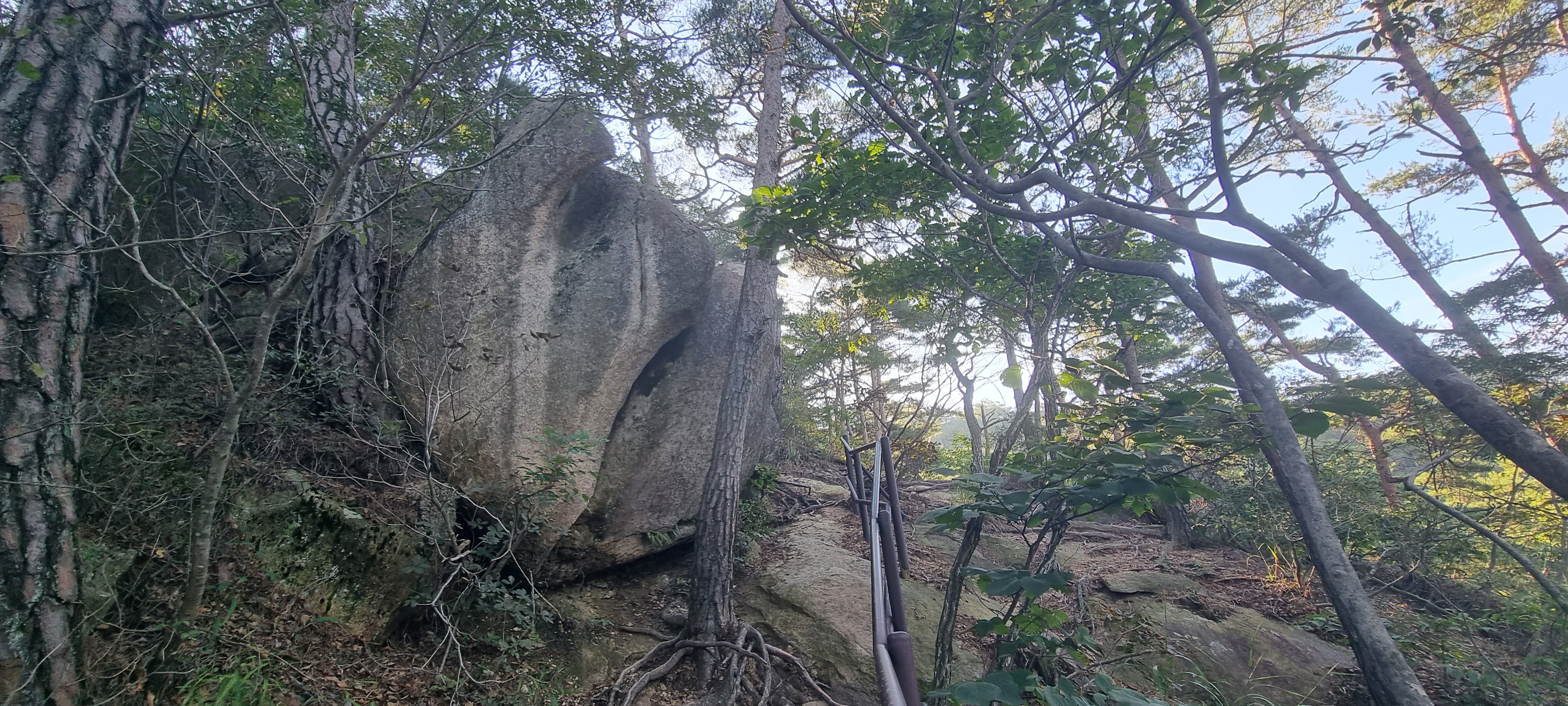 등산로 내려가다가 오른쪽을 올려다 보니, 뭔가 멋진 풍경이 있을 거 같은 바윗터가 있네요.