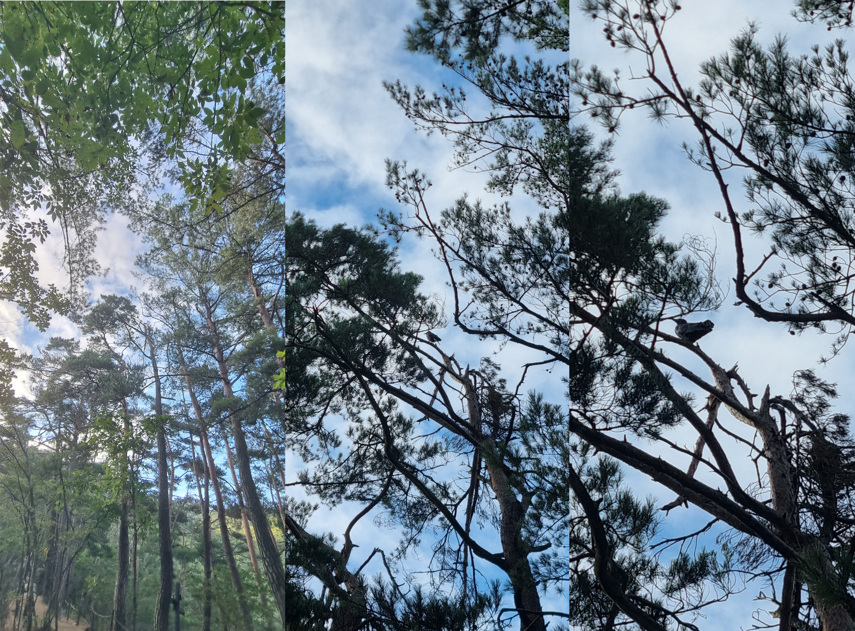 벤치에 앉아서 쉬다가 나무위를 바라보니,