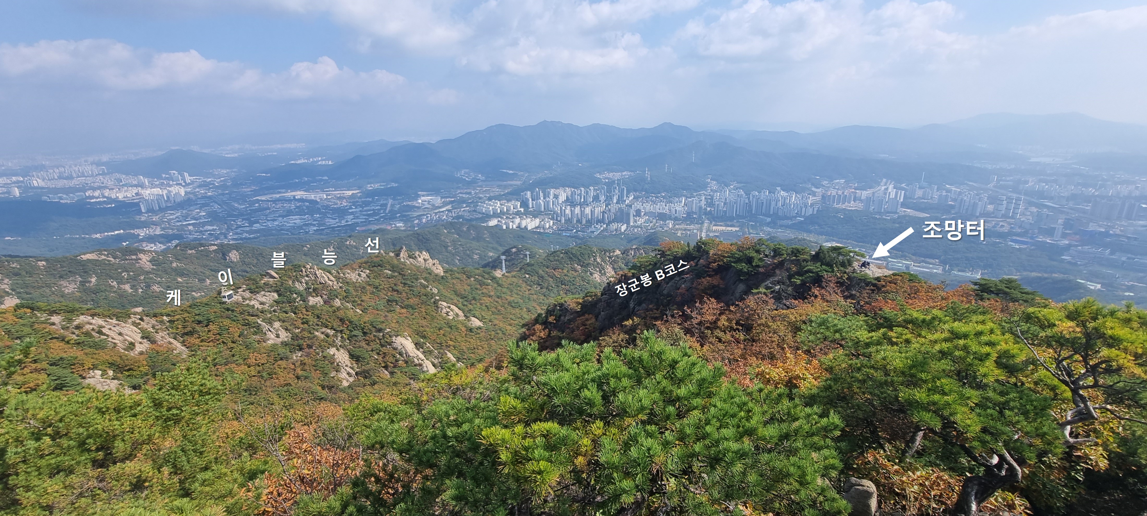 방금 올라온 '장군봉 B코스' 조망터가 보이네요.