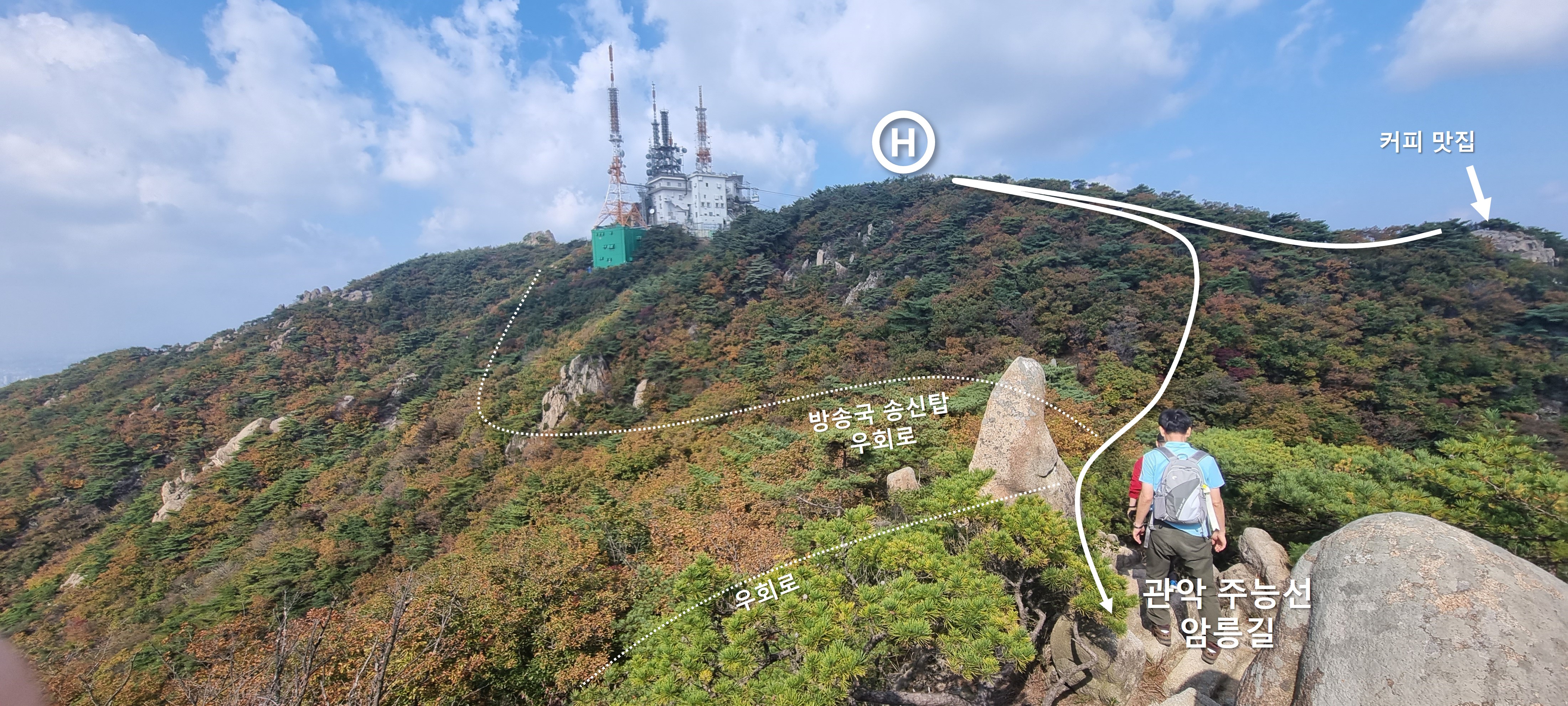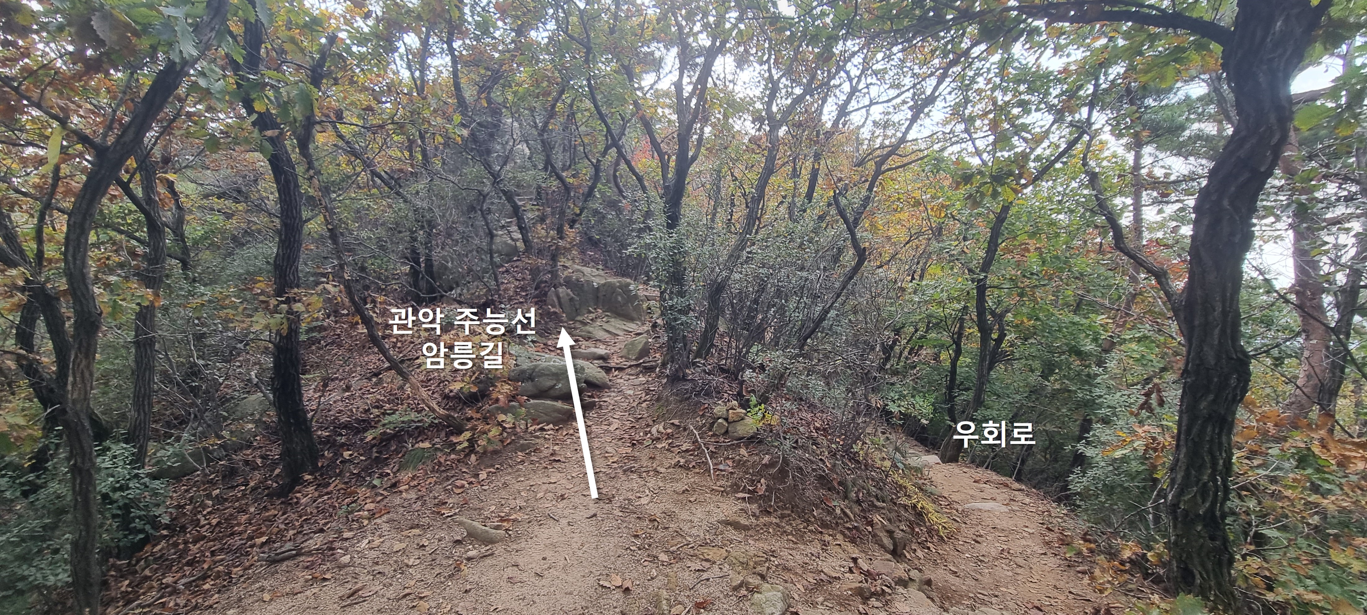 점선 방향이 주로 다니시는 우회 등산로 인데, 개인적으로는 우회로 말고 암릉길을 더 선호 합니다.
