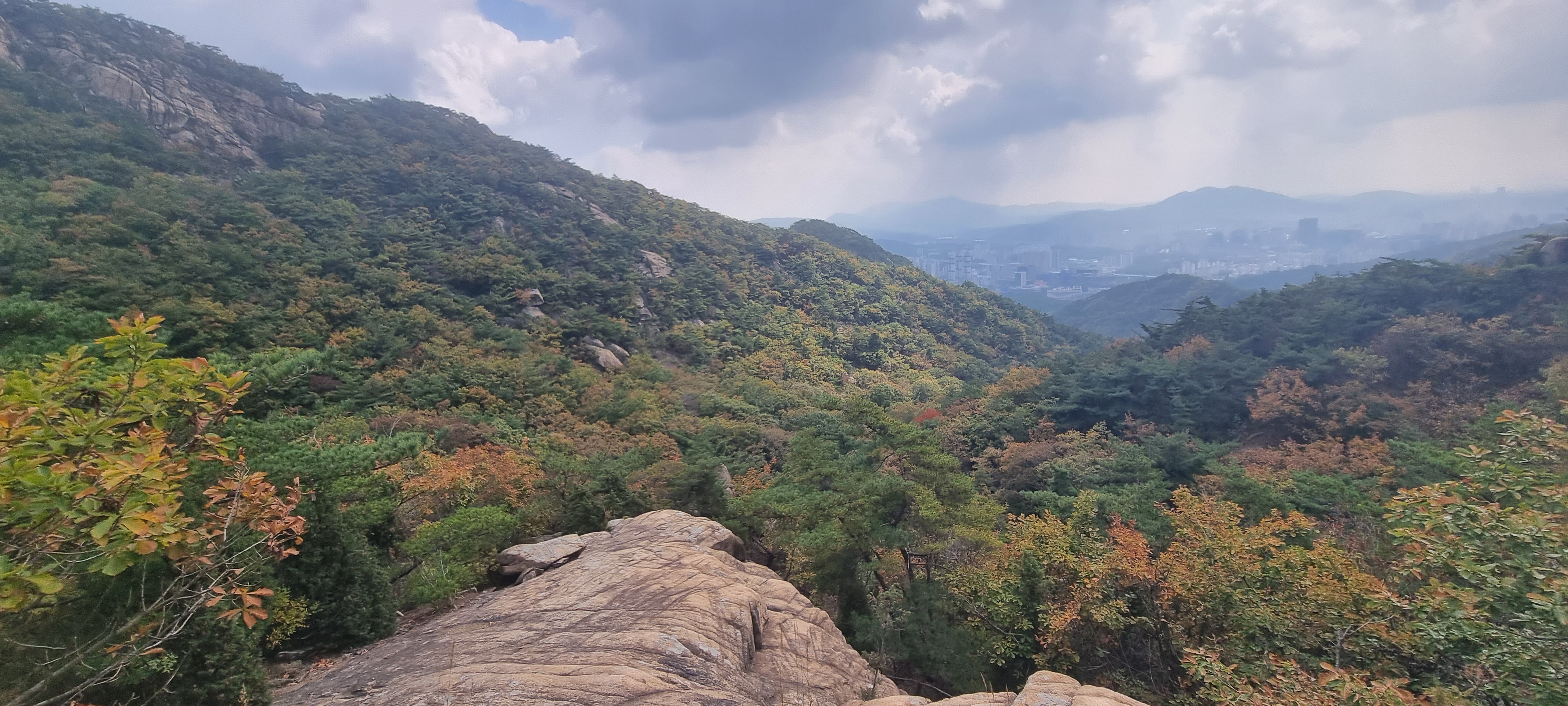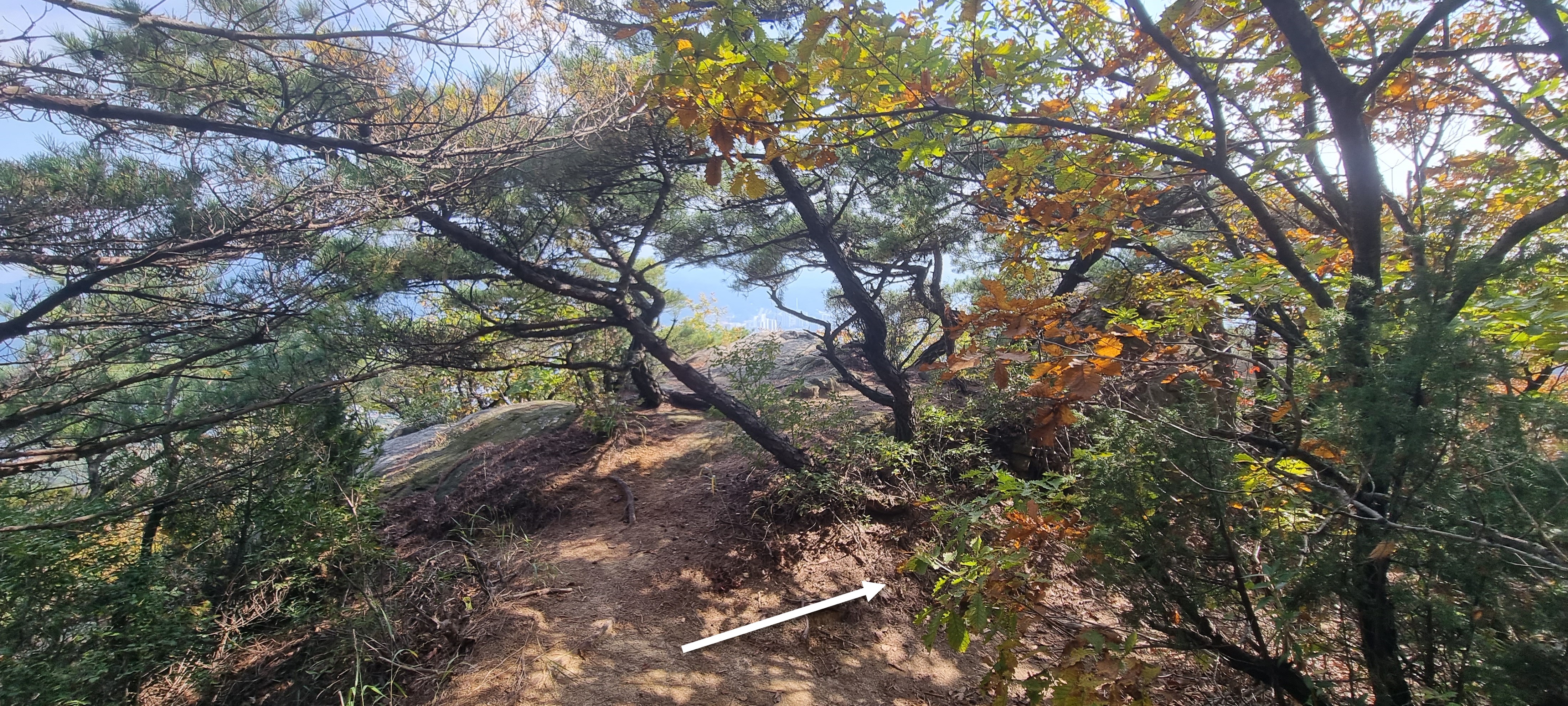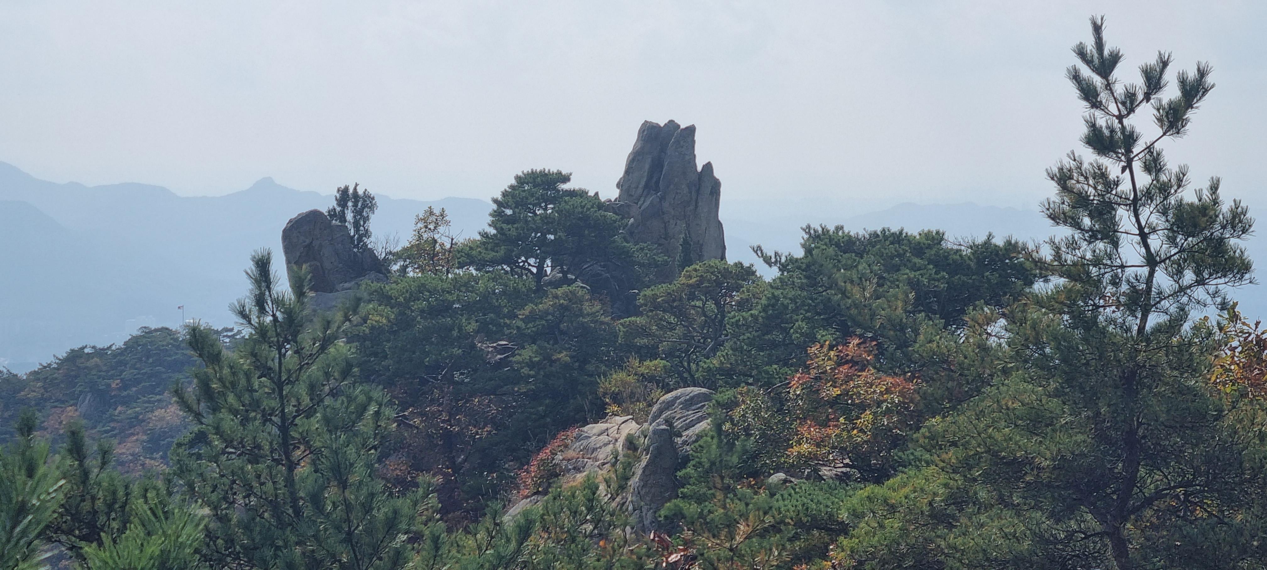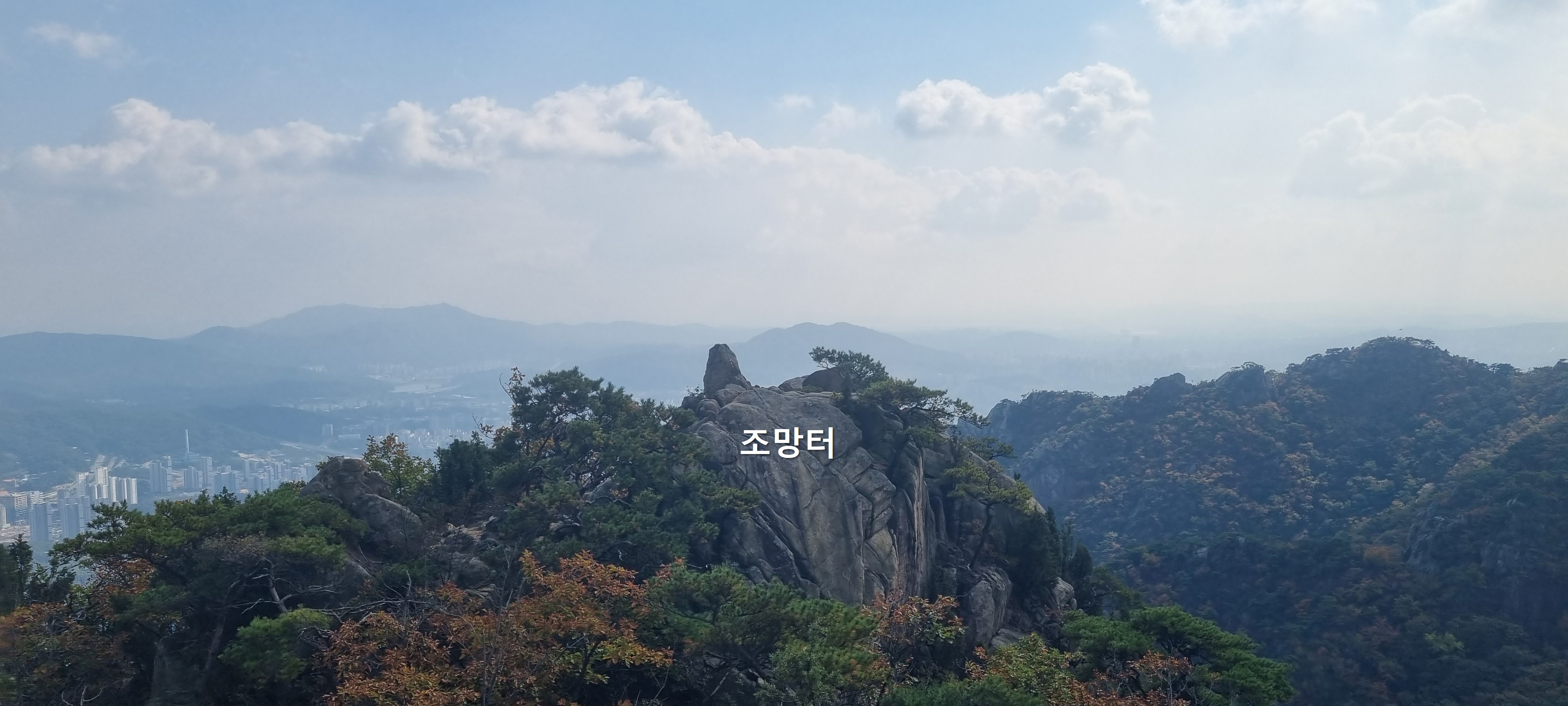앞에 보이는 바윗 조망터에 가면 주변 풍경을 더 깔끔하게 볼 수 있습니다.