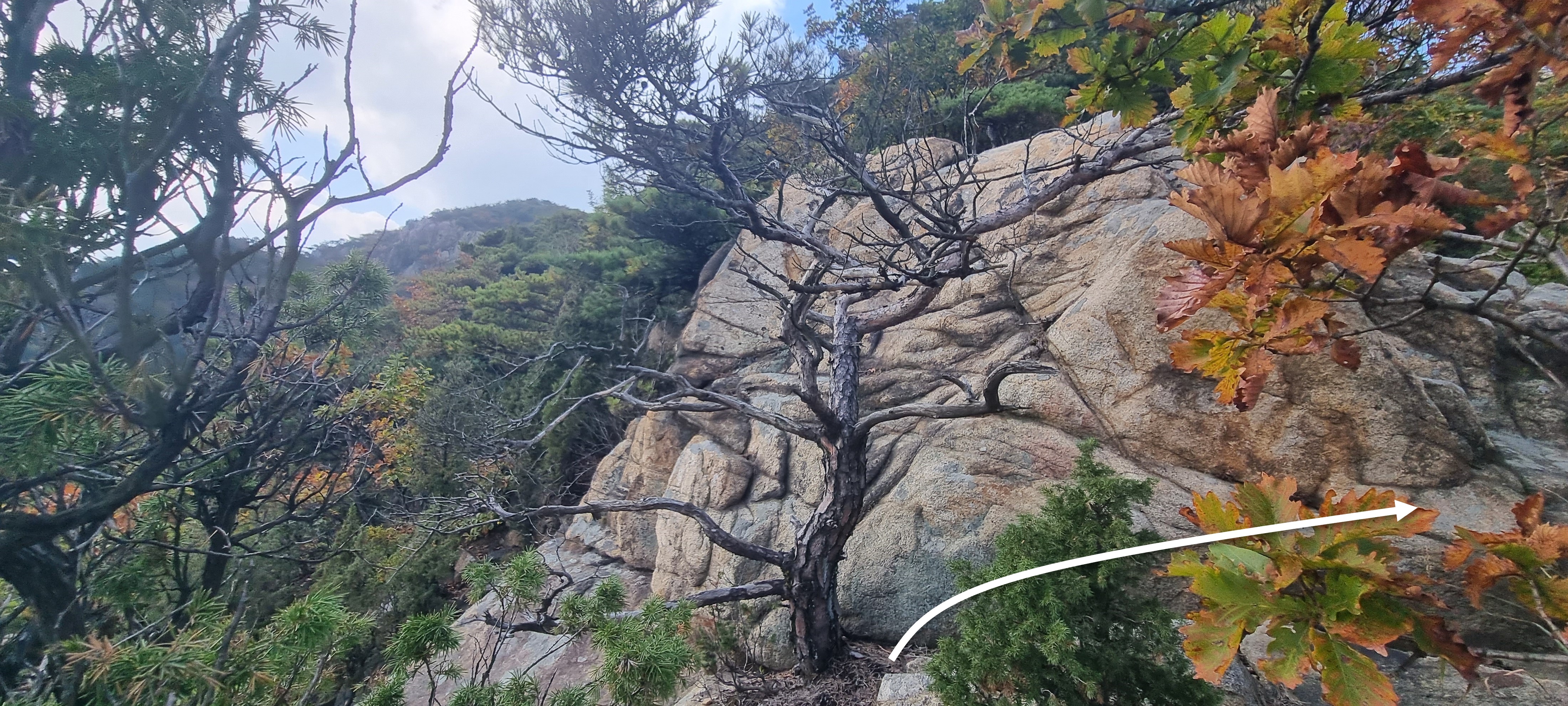 윗 큰 바위를 타고 내려오진 않았구요. 우회로를 이용했습니다.