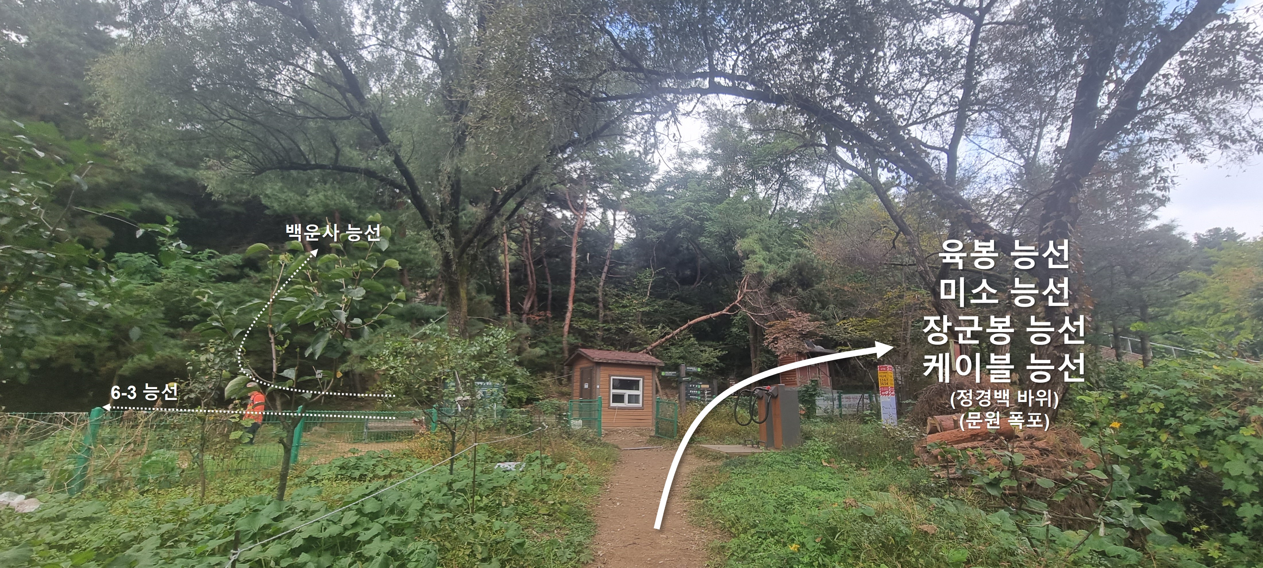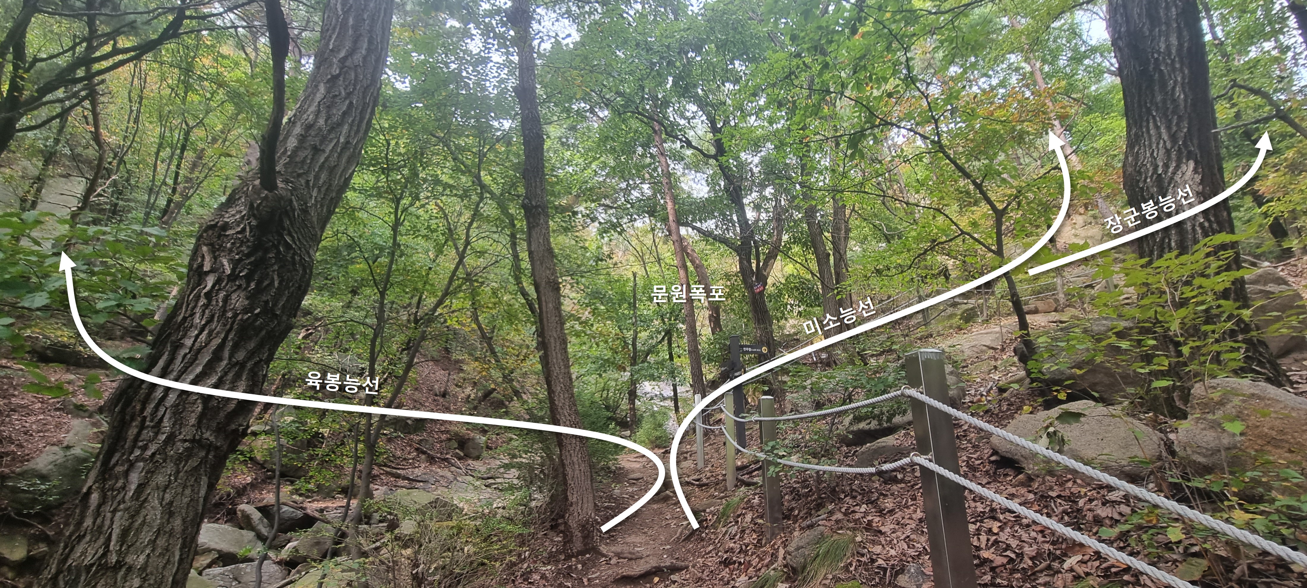 정경백 바위 ~ 문원폭포 사이에 위치한 여러 능선들의 갈림길.