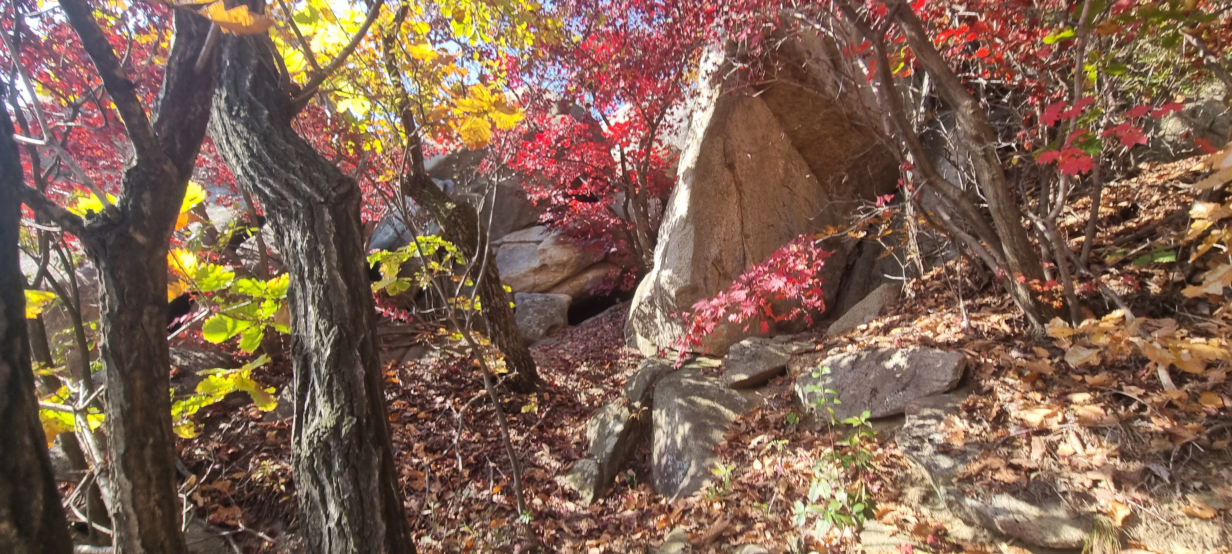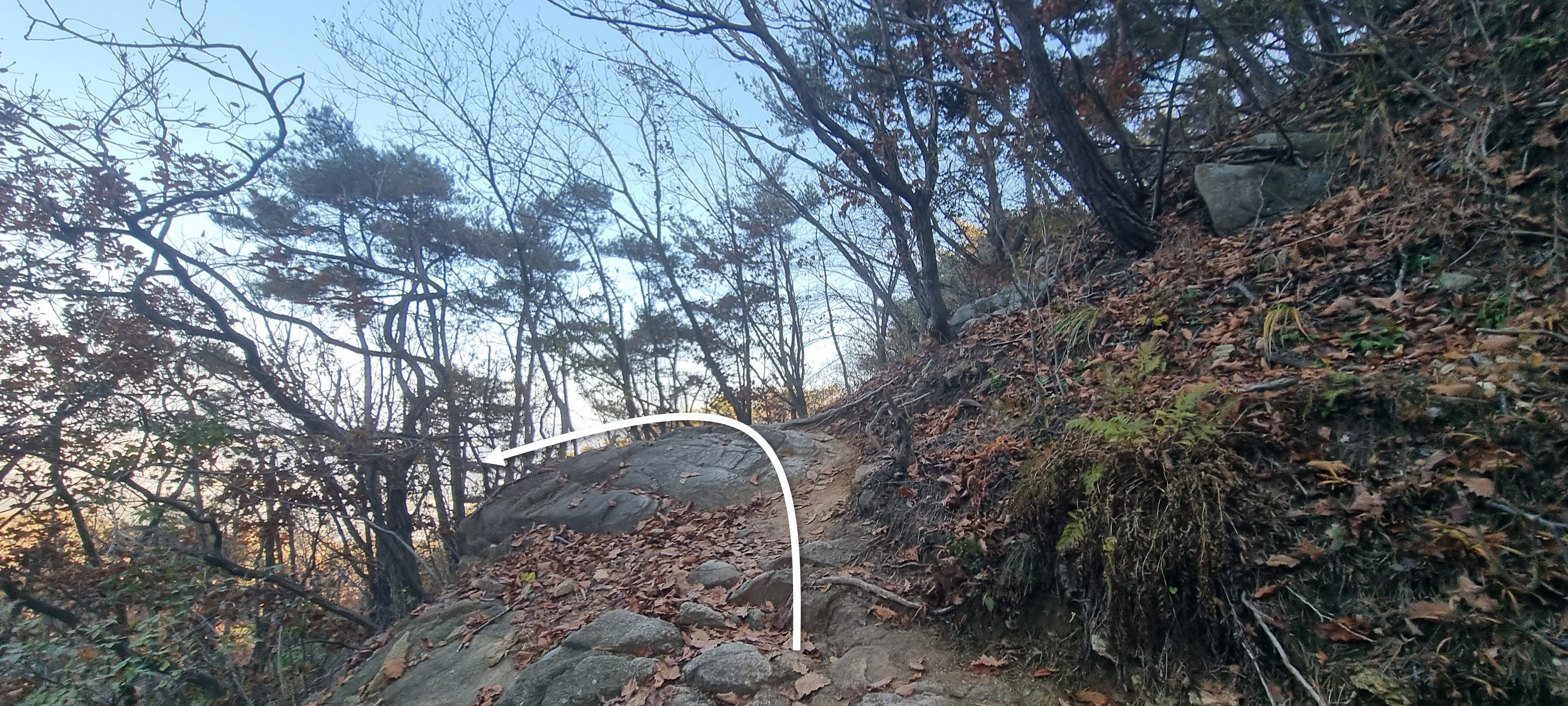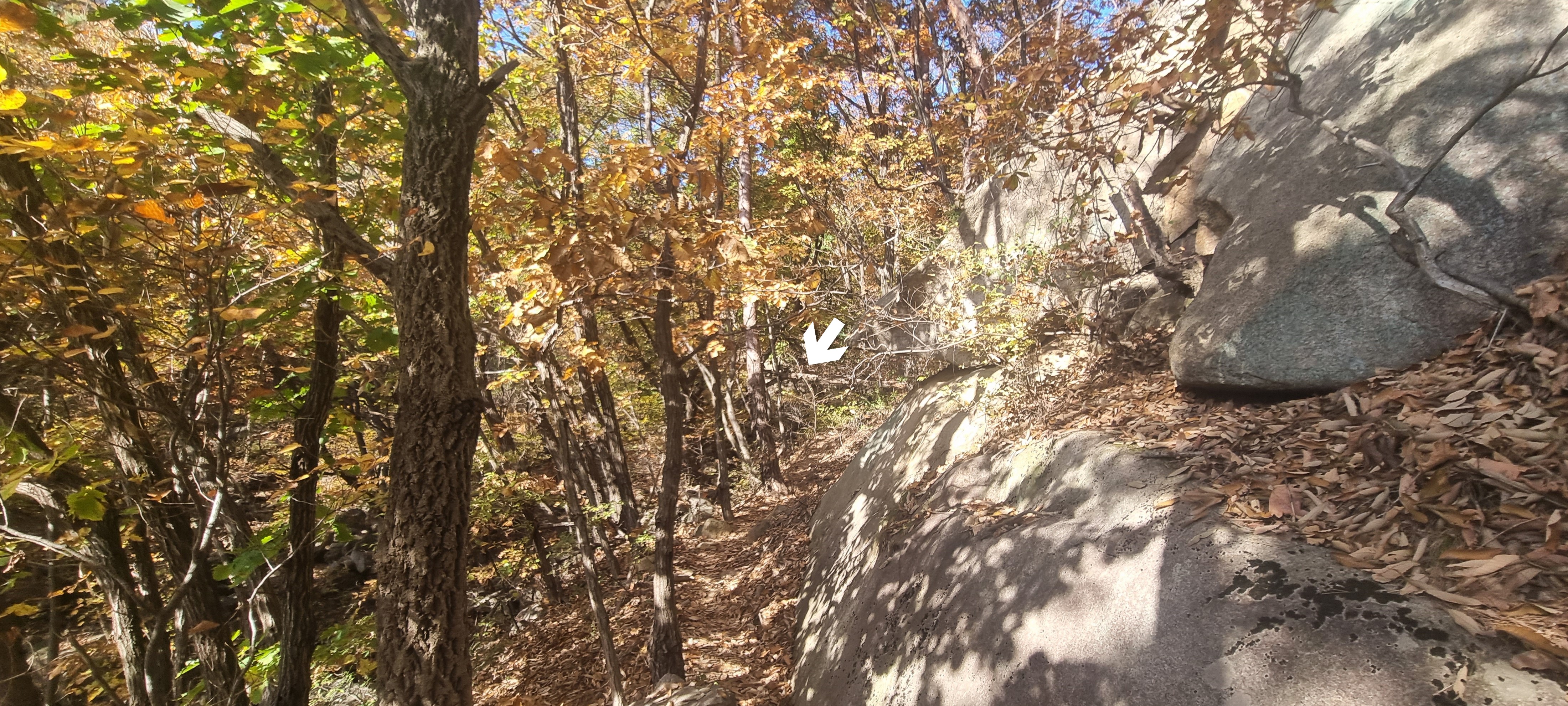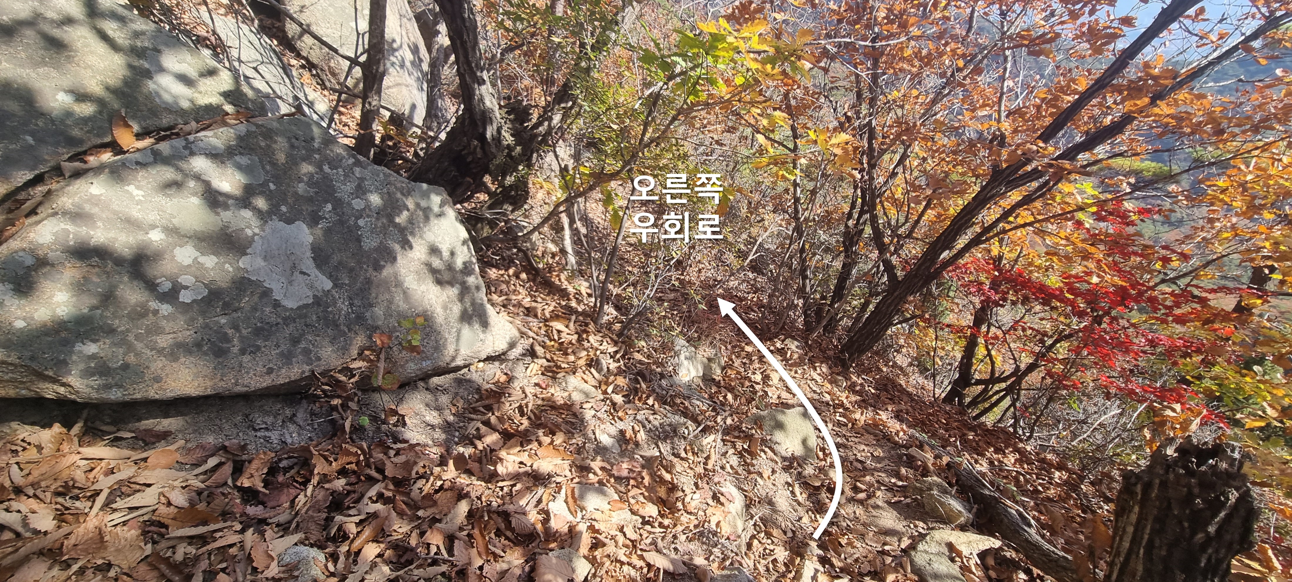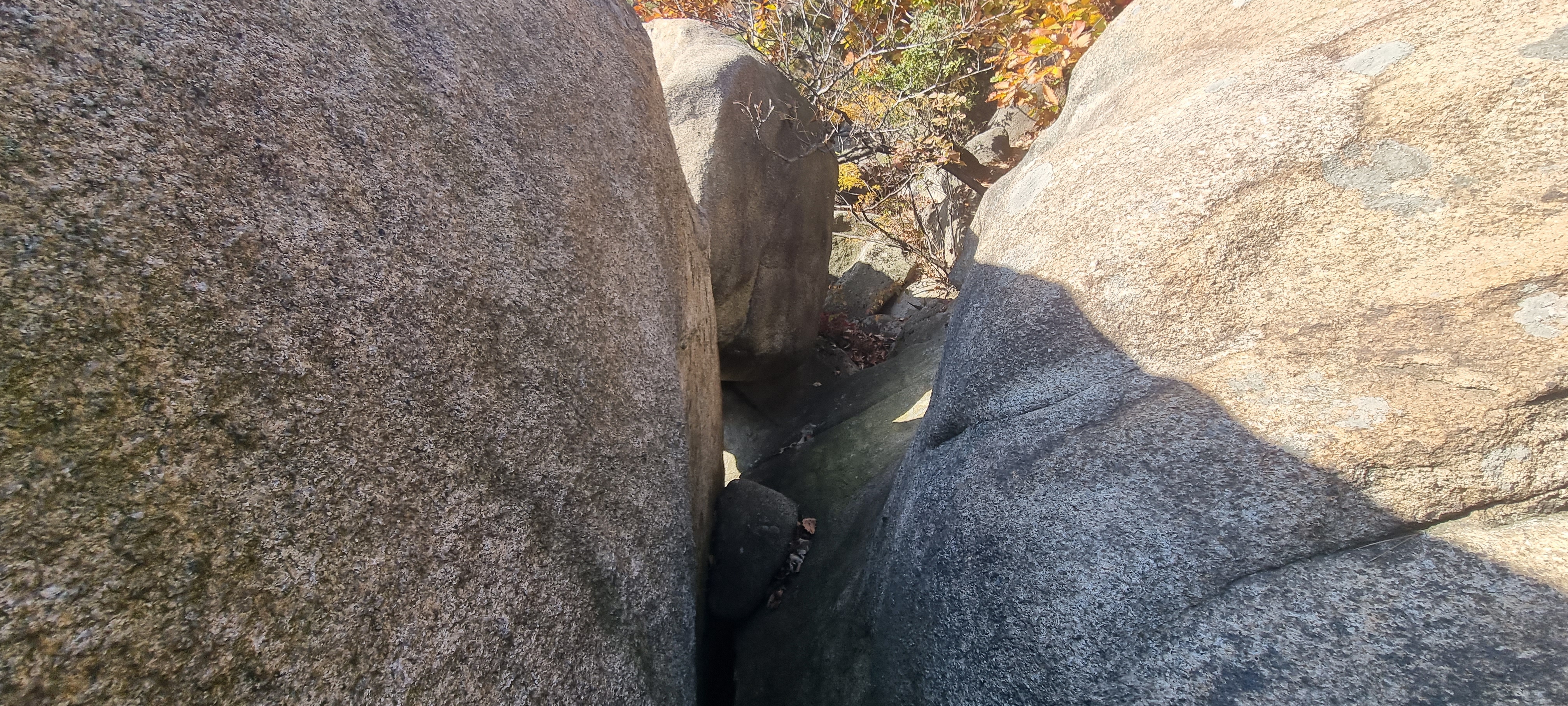개구멍을 통과하지 않으려면, 윗 사진의 바위 아랫 쪽에서, 올라가지 않고, 오른쪽 우회로를 이용하시면 됩니다.