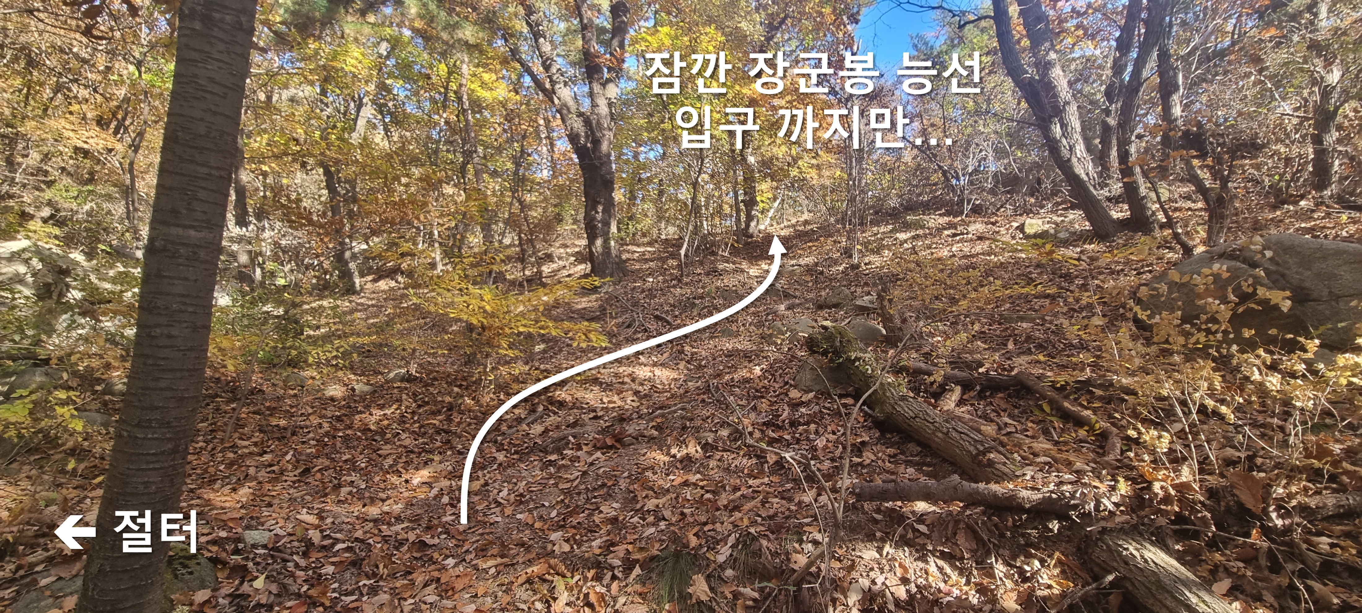 '장군봉 능선'으로 갈라지는 입구 초입만 살펴보고 옵니다.