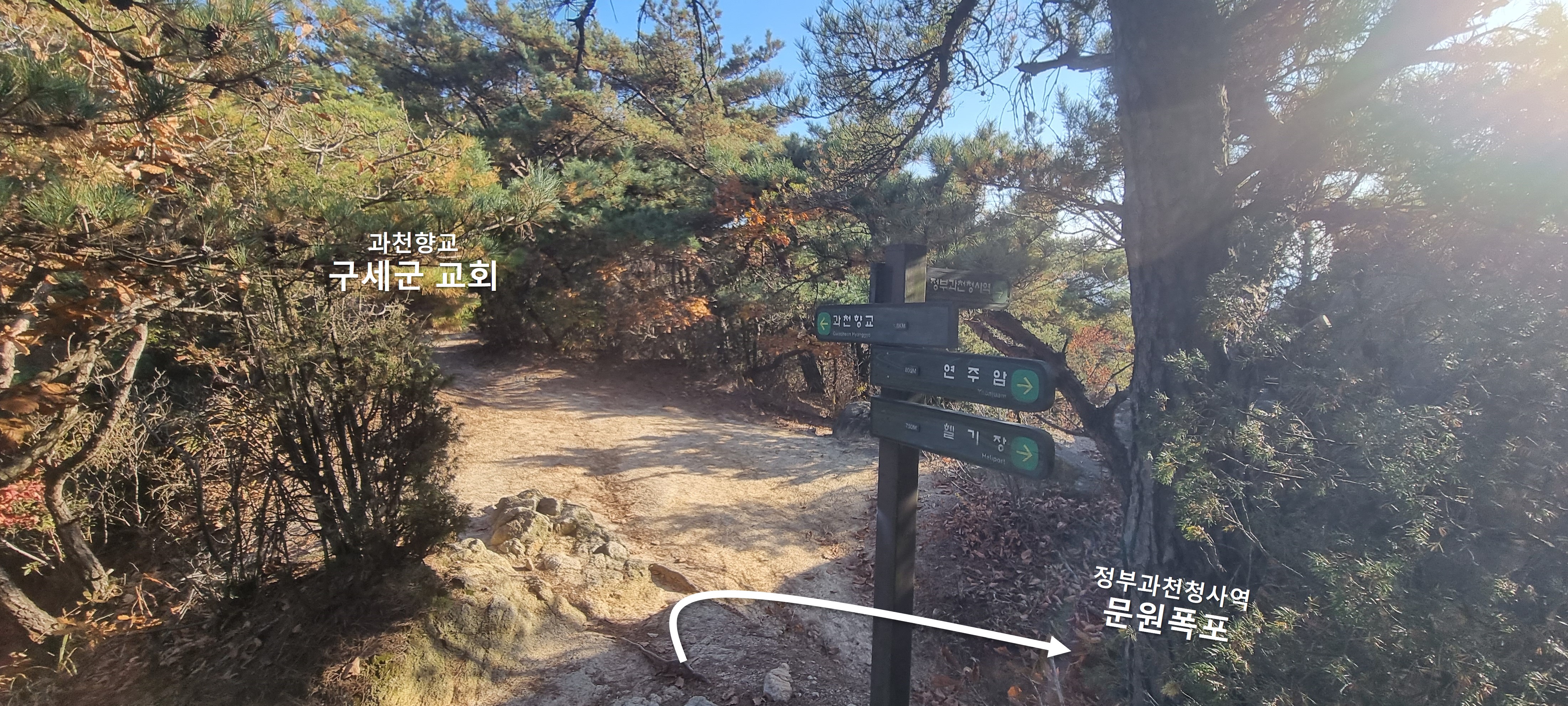 오른 쪽 90도 꺽어서 '정부과천청사역' 방향으로 가면, 문원폭포가 나옵니다.