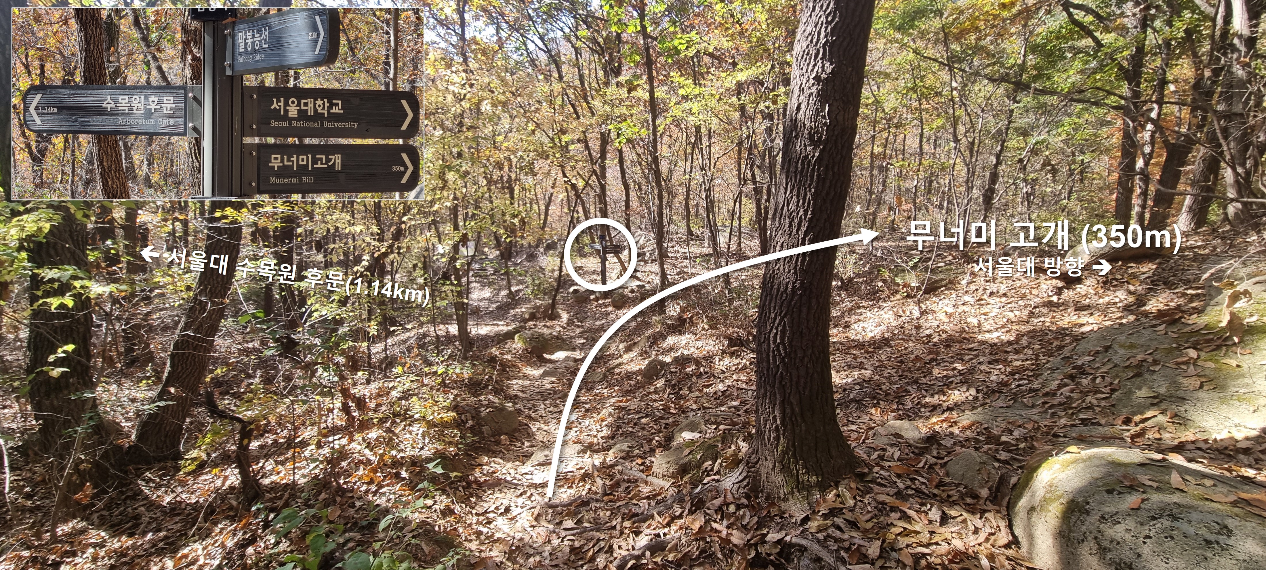 그 사이에 남쪽엔 '수목원' 북쪽엔 '서울대'가 있습니다.