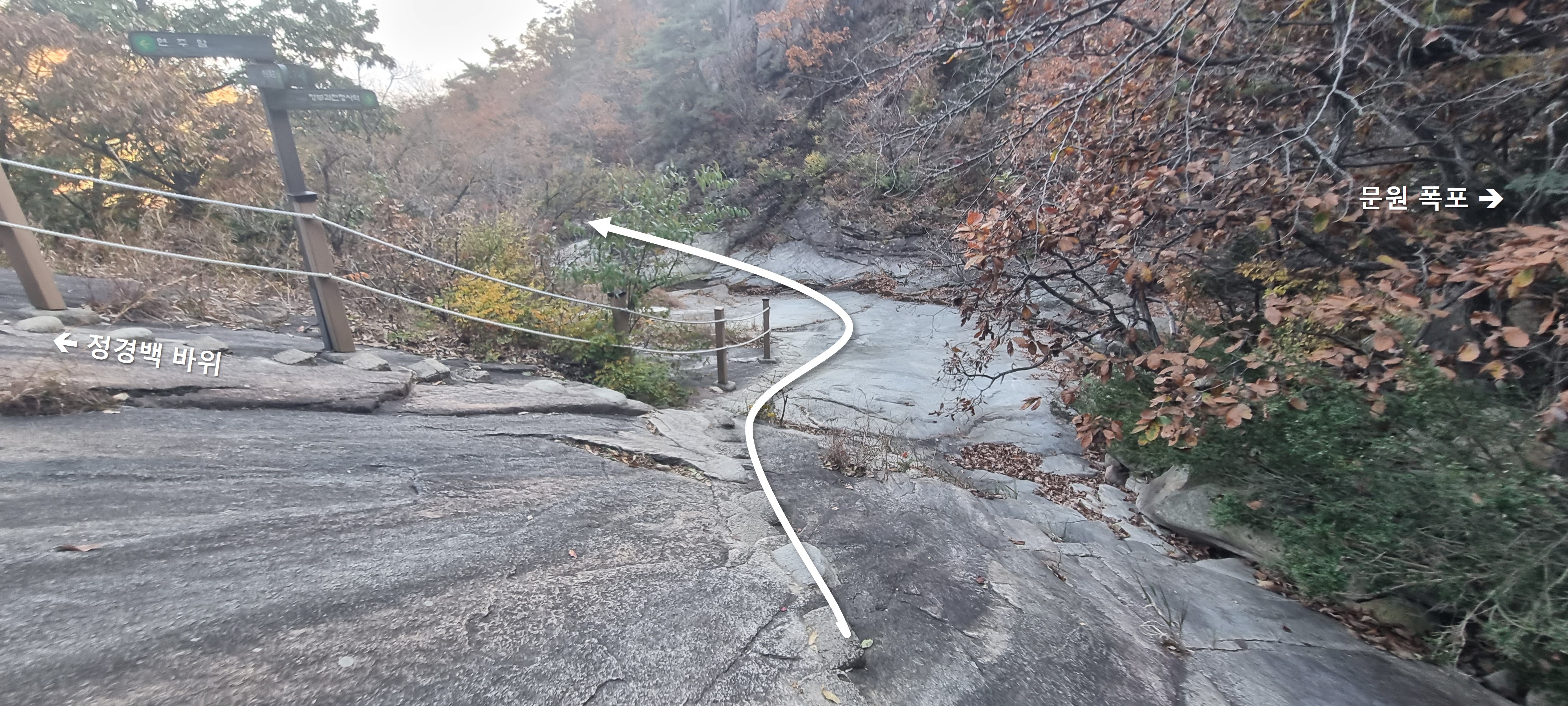 문원폭포 하단부, 정경백 바위를 지나쳐서
