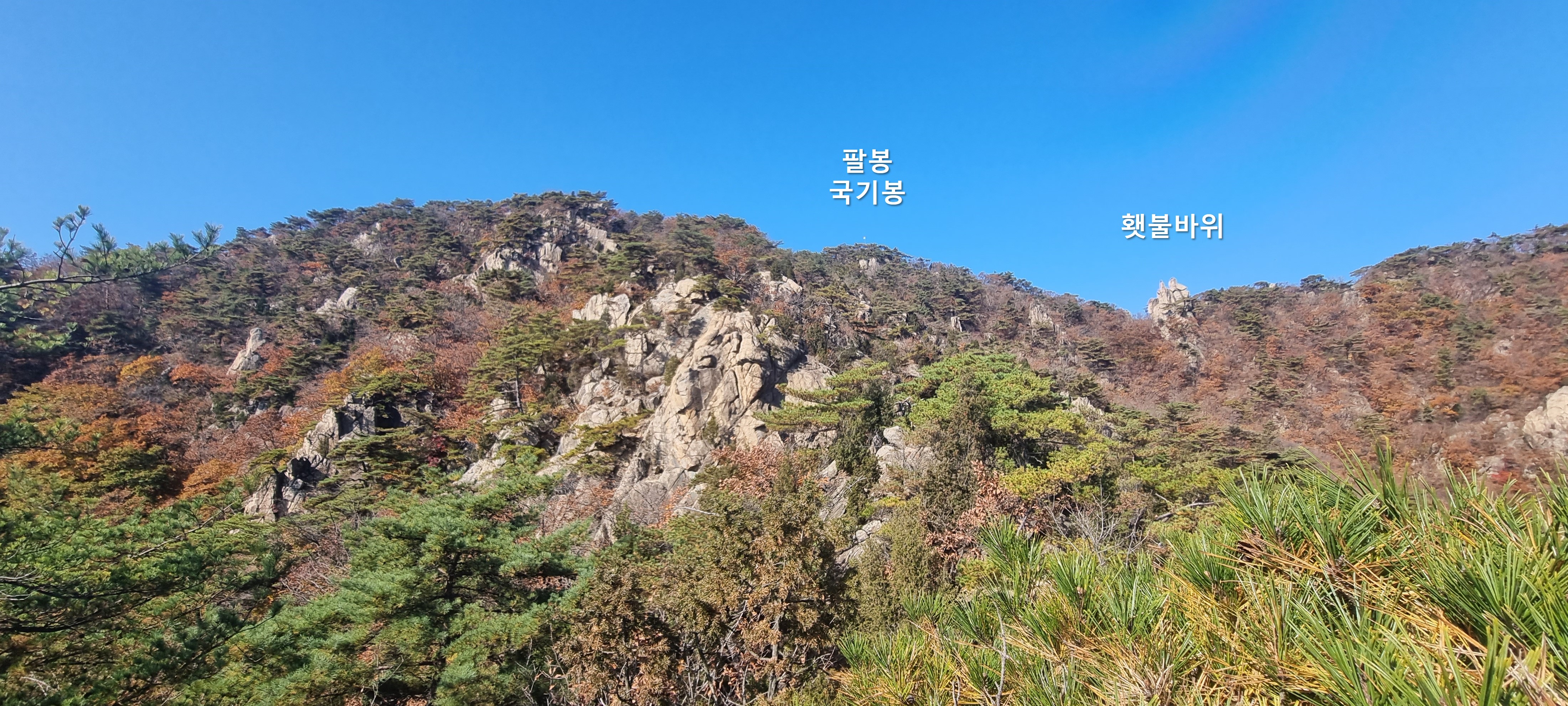 학바위능선의 국기봉이 내려다 보이는 걸 보니, 합류 지점에 많이 가까워진 거 같습니다.