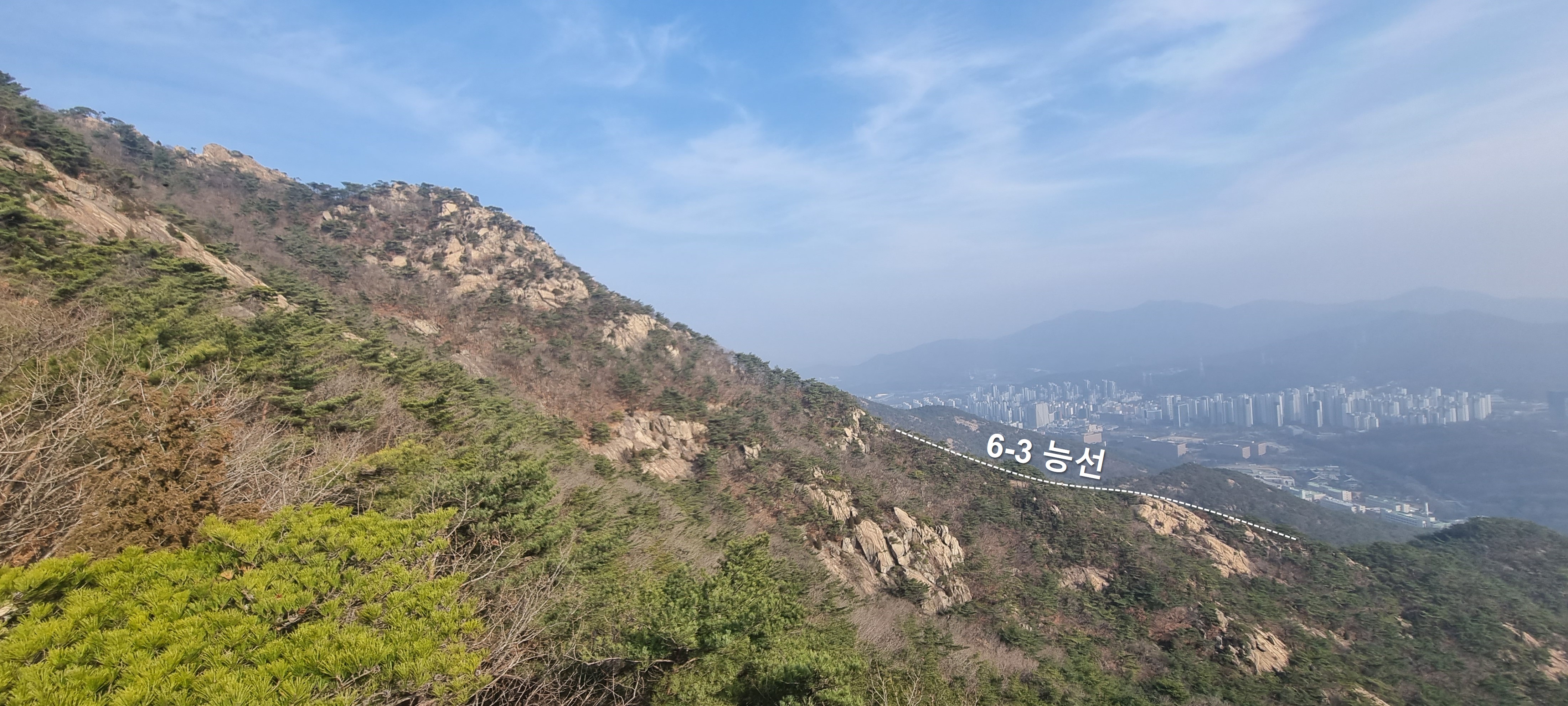 육봉능선의 3봉에서 갈라져 내려오는 6-3능선도 보입니다.