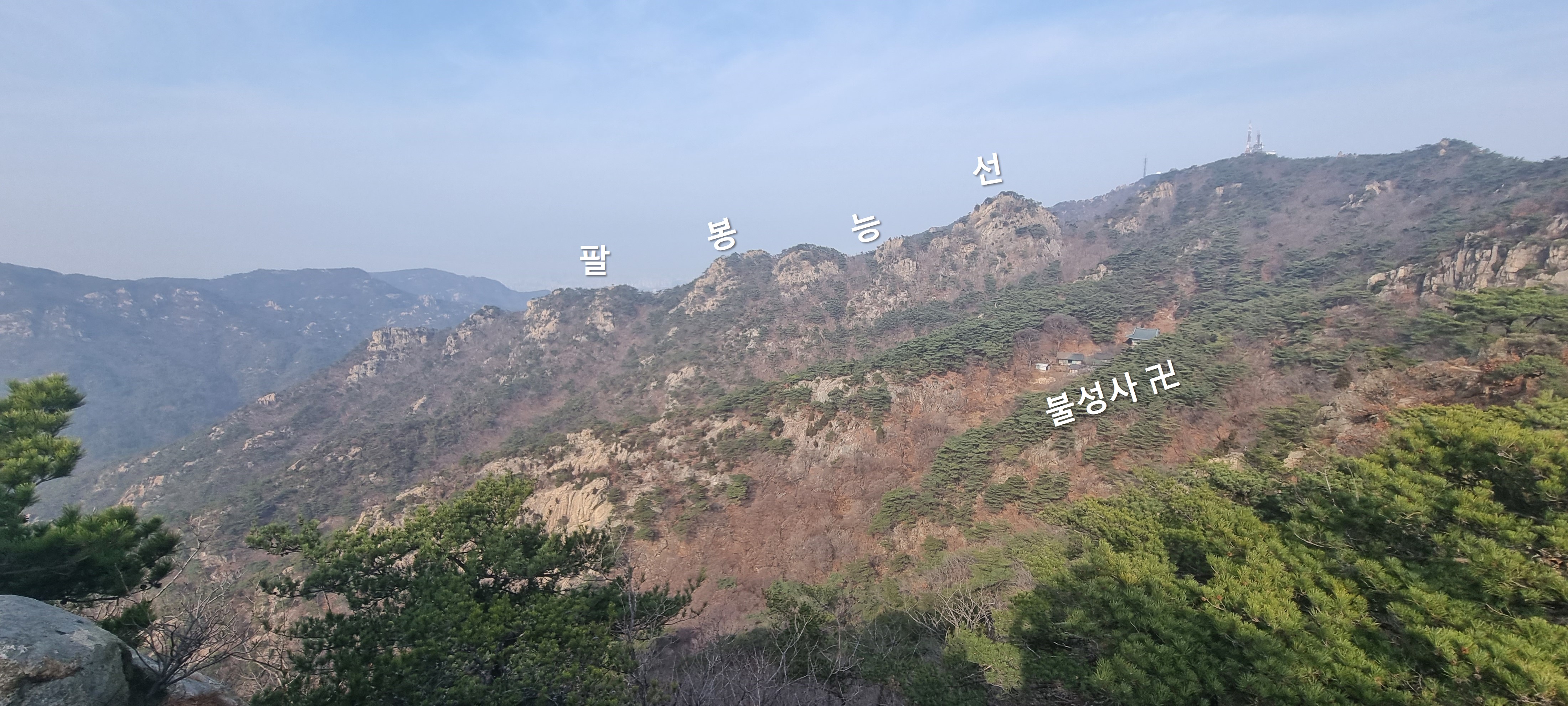 '불성사卍'에서 뻗어있는, 서울대 수목원으로 가는 능선이 보입니다.