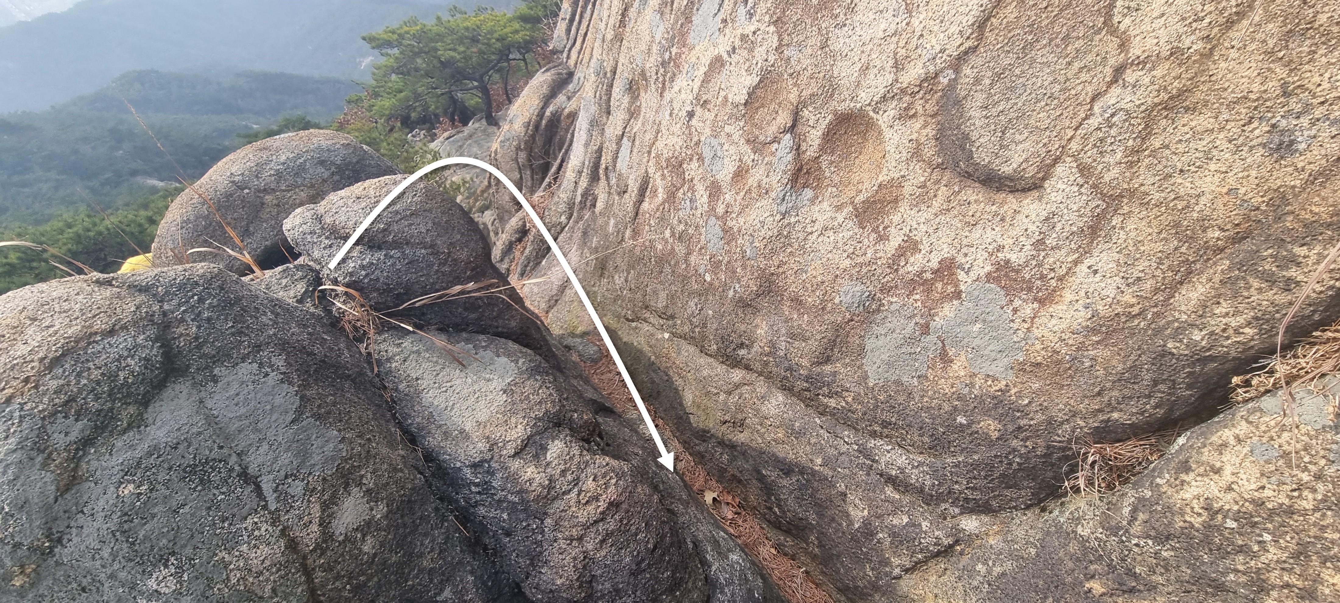 바위를 타고 넘어가다가, 왼쪽 아래를 내려다 보면,