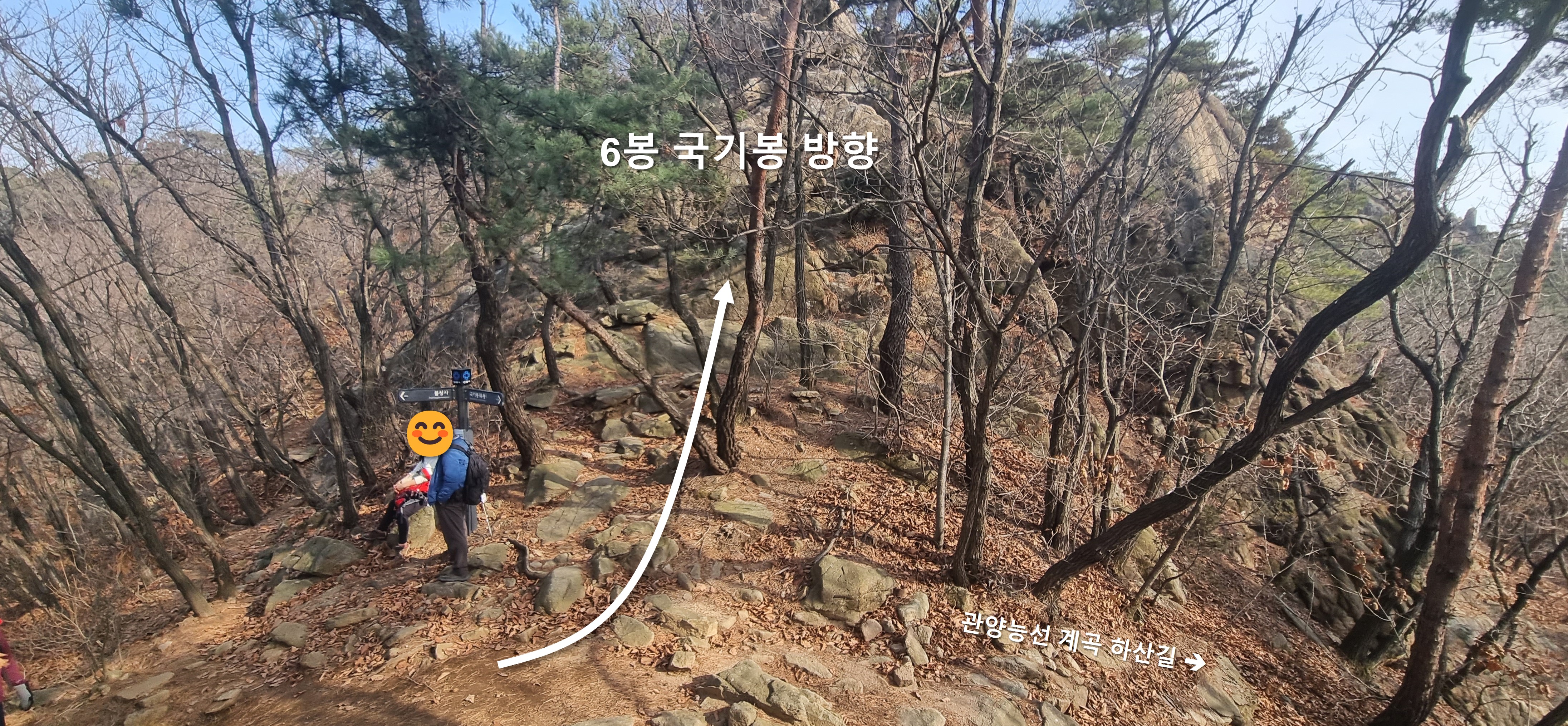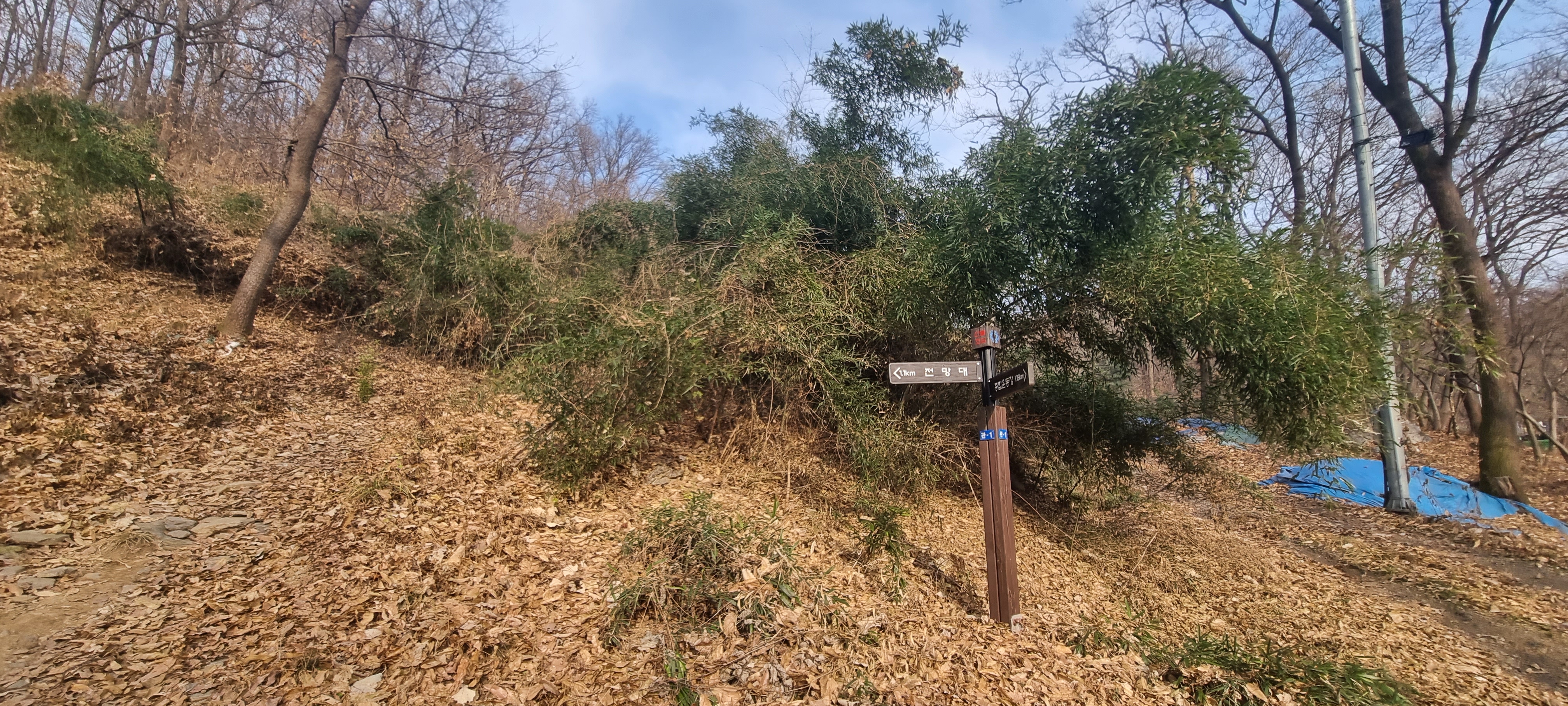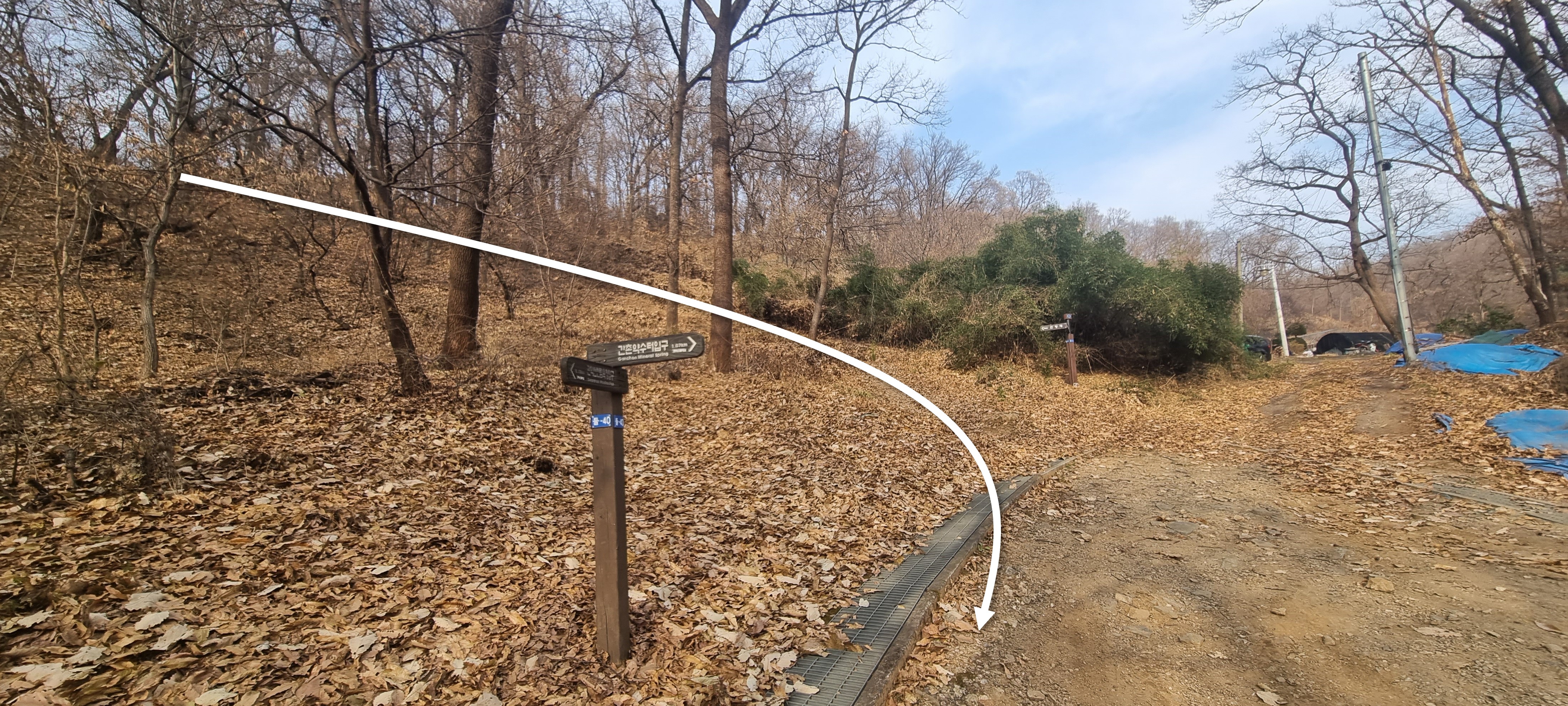 이 곳 이정표 두 개가 있는 부분, 산림욕장 입구에서 시작하는 등산 코스가 훨씬 더 안전하고 좋은 코스입니다. 🙄