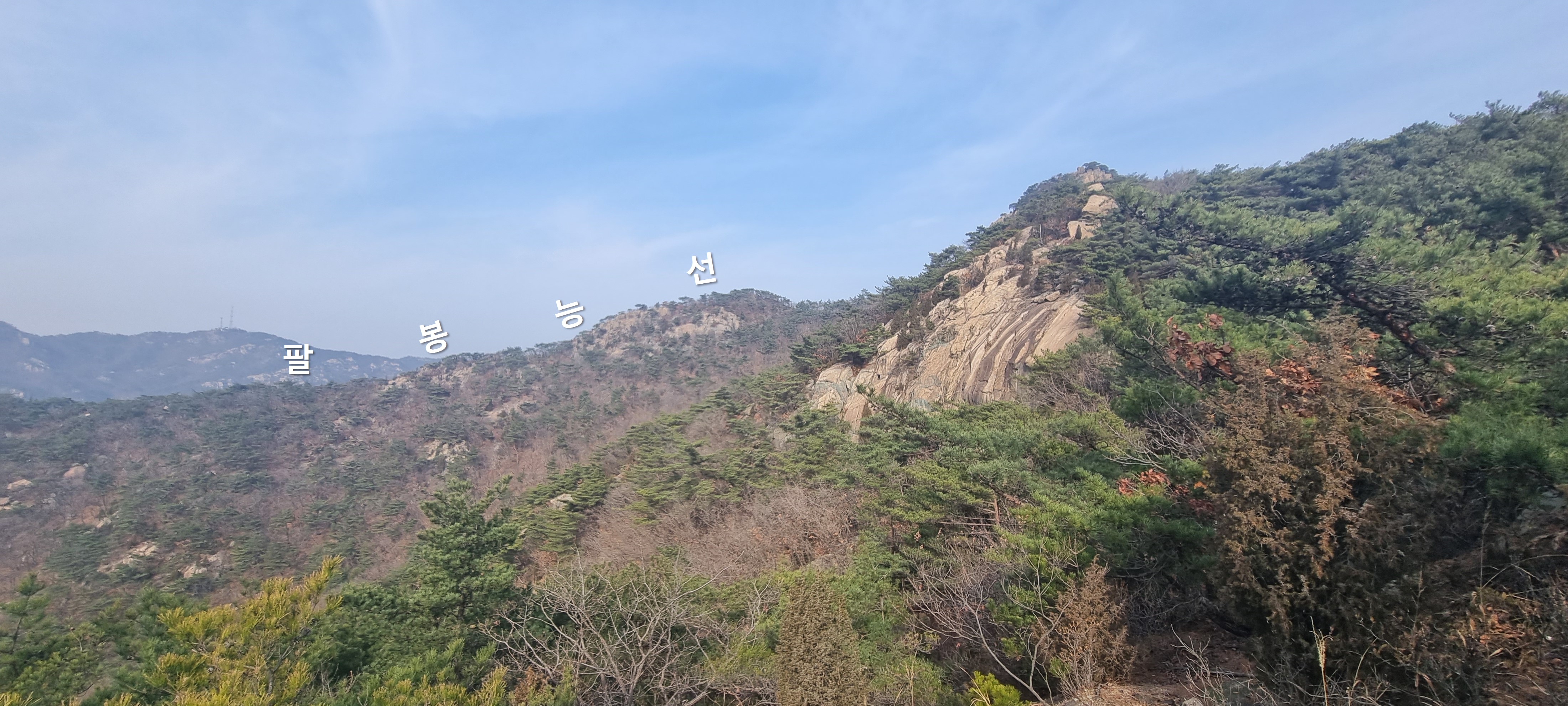 어느 정도 올라가니, 멀리 '팔봉능선'도 보이기 시작합니다.